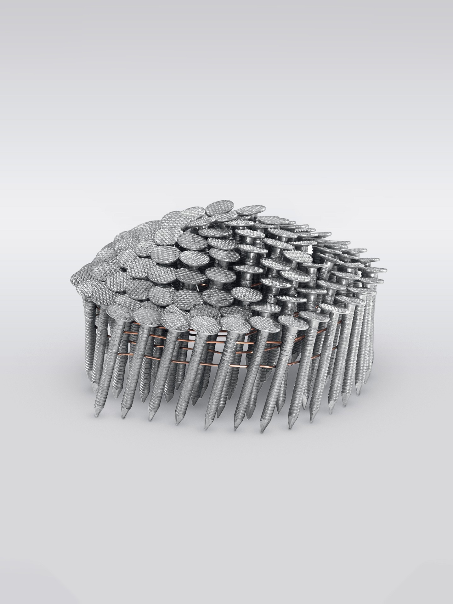 Кольцевая накатка и рифленая поверхность гвоздей обеспечивают повышенную прочность конструкции.