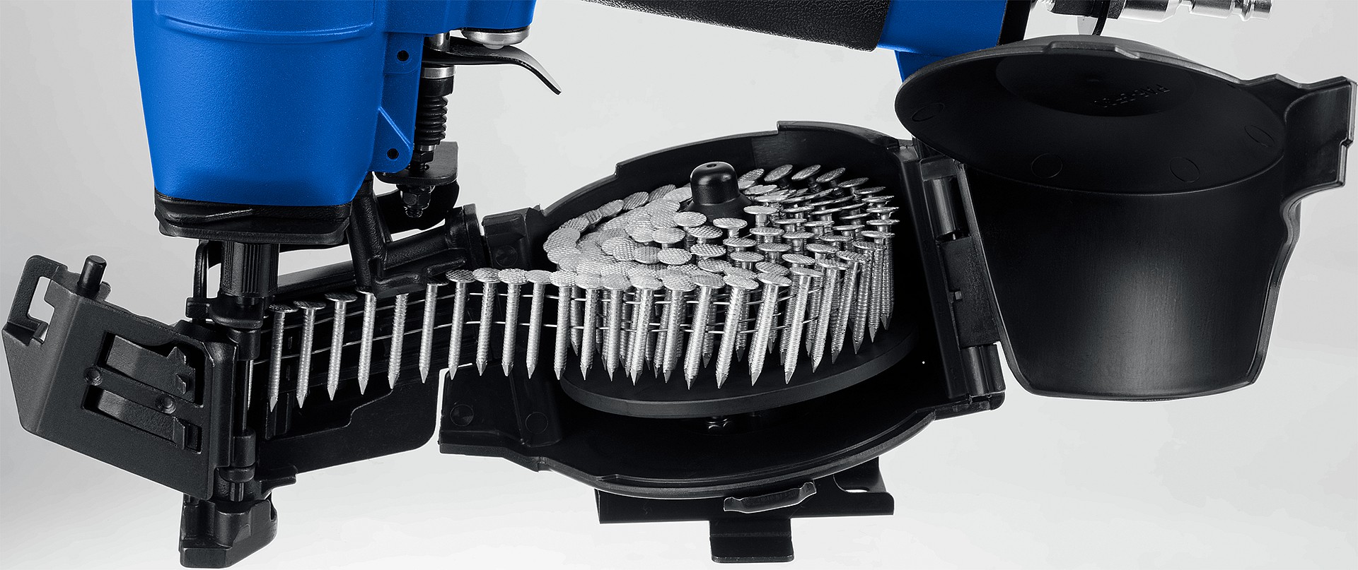 Монтаж производится при помощи гвоздезабивного пистолета (нейлера), рассчитанного на работу с барабанными гвоздями в магазине с углом наклона 16 град. Использование нейлера обеспечивает высокую скорость монтажа и удобство в работе.
