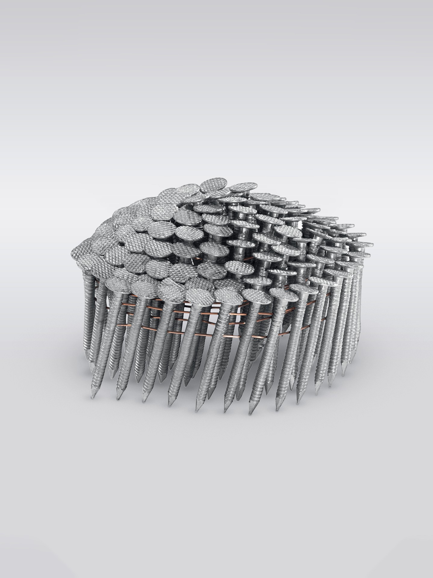 Кольцевая накатка и рифленая поверхность гвоздей обеспечивают повышенную прочность конструкции.