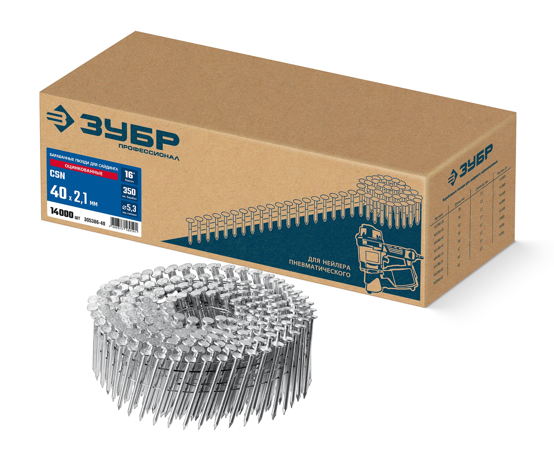 Барабанные гвозди для сайдинга оцинкованные ЗУБР 305386-