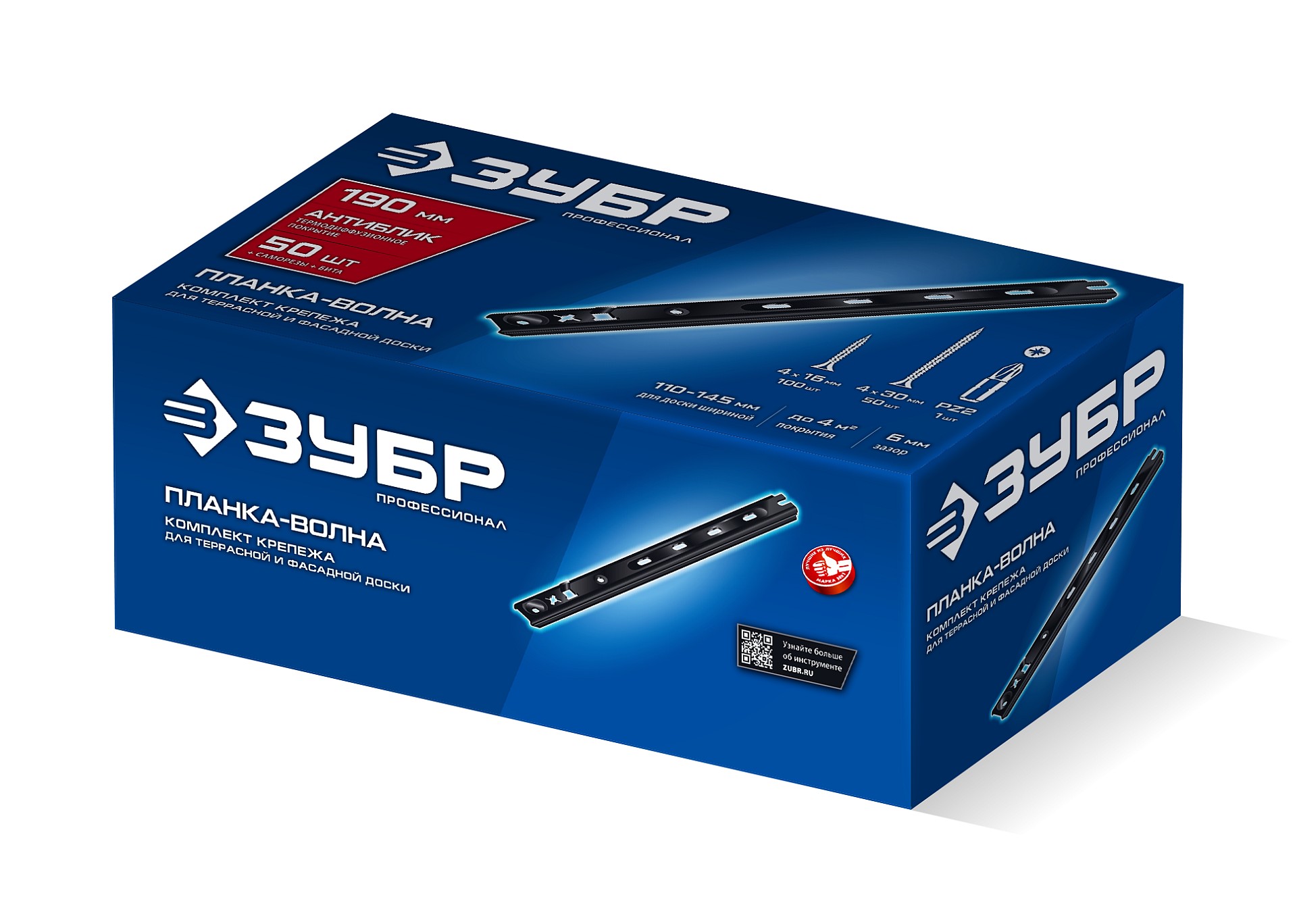 Крепеж для фасадной и террасной доски ЗУБР Планка-Волна Антиблик, 190 мм, с саморезами и битой, 50 шт, Профессионал, 307031-190 — скрытый крепеж для фасадной и террасной доски ускоряет и облегчает отделочные работы и обладает при этом рядом преимуществ перед традиционным креплением с помощью гвоздей.
