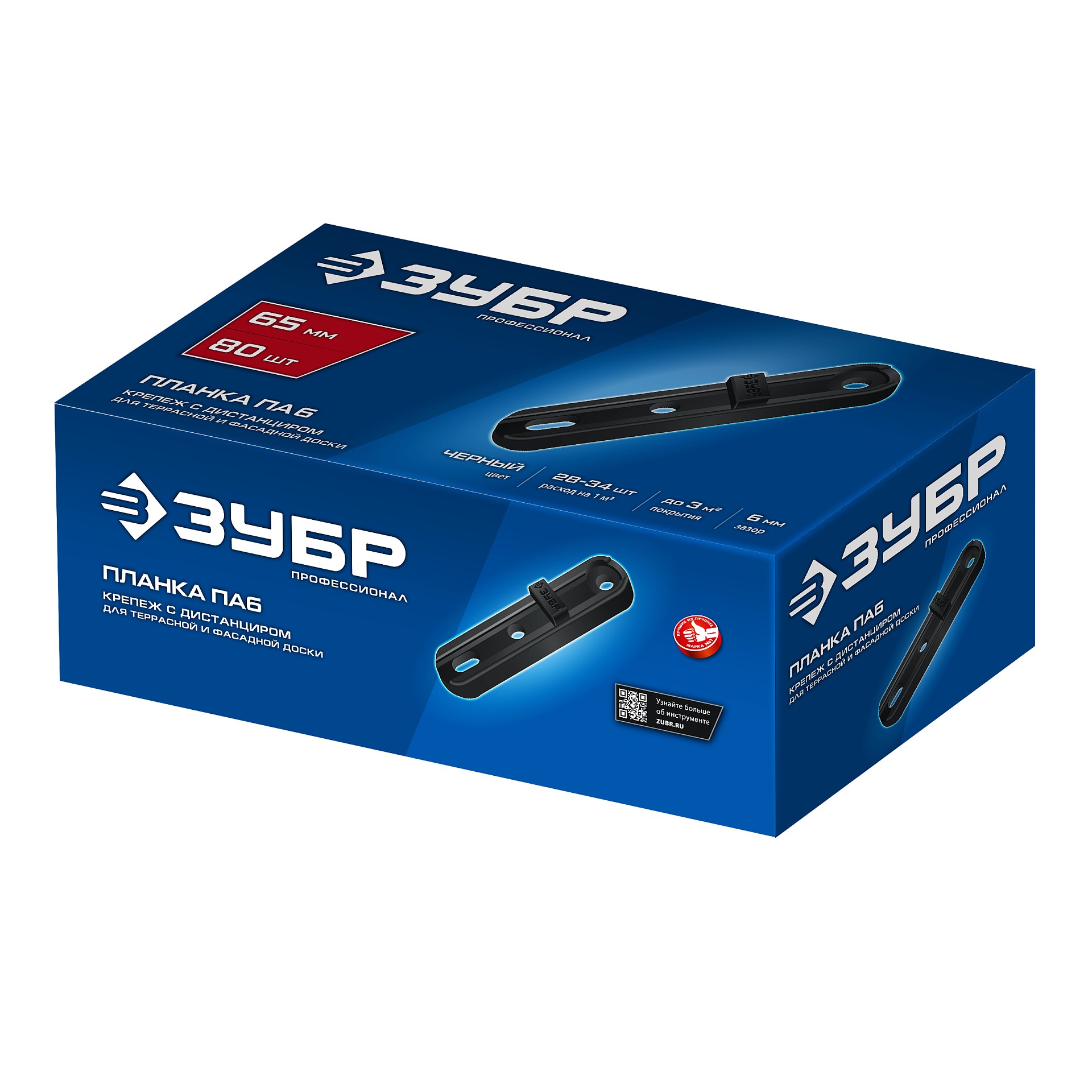 Планка ПА6 65 мм, крепеж для фасадной и террасной доски, композитный материал, 80 шт, ЗУБР Профессионал 30704-65 - предназначен для скрытого монтажа фасадной и террасной доски.