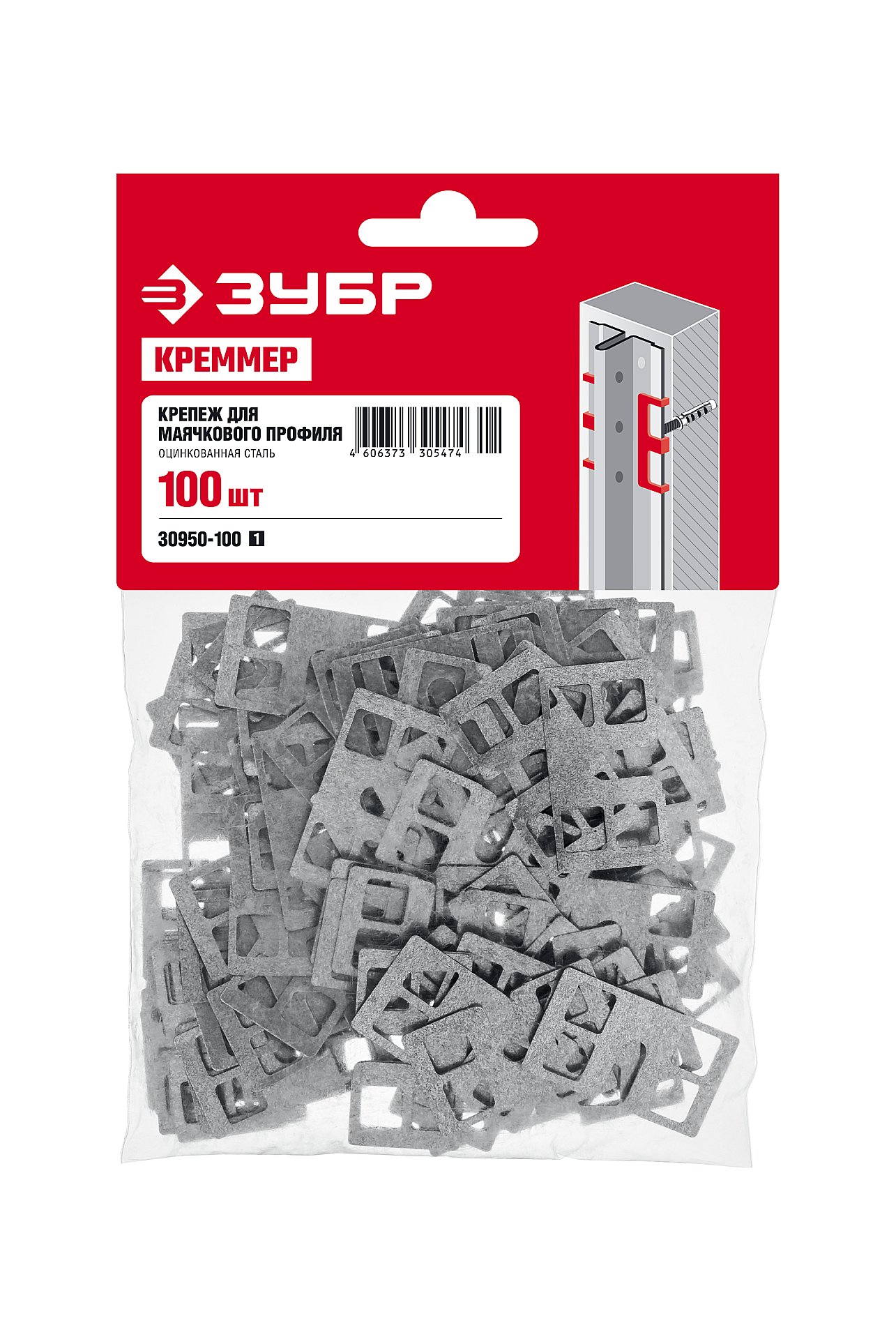 Крепление для установки маячковых профилей ЗУБР КРЕММЕР-100, 100 шт 30950-100_z01 - предназначен для установки и выравнивания маячкового профиля в процессе отделочных работ.