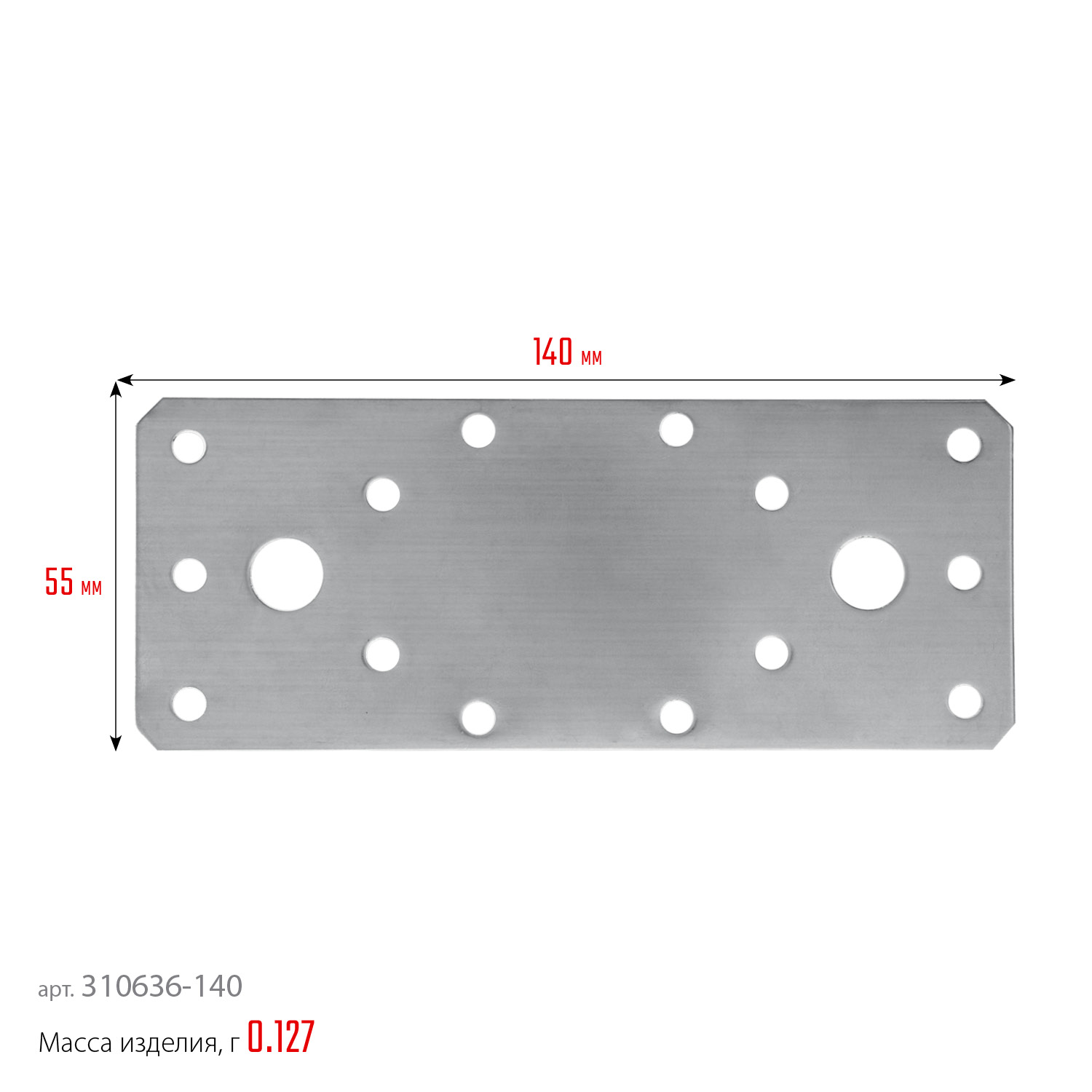 Нержавеющая крепежная пластина ЗУБР 140х55 х 2мм, НКП-2.0 310636-140 - предназначена для домостроения при устройстве стропильно-подстропильной системы, сращивании пиломатериалов, сопряжении элементов, расположенных в одной плоскости.