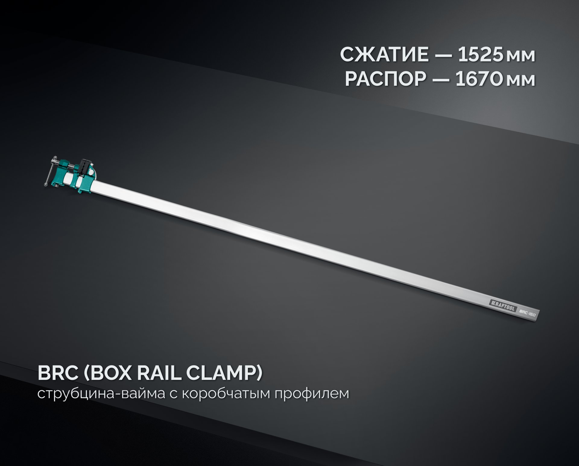 Высокоточная струбцина-вайма KRAFTOOL BRC-150, 1525/48 мм 32313-150 — высокоточная струбцина с коробчатым профилем из анодированного алюминия (BRC — Box Rail Clamp), предназначенная для работы на сжатие и распор. Обеспечивает возможность жесткой фиксации на верстаке и подходит для профессионального и бытового использования.