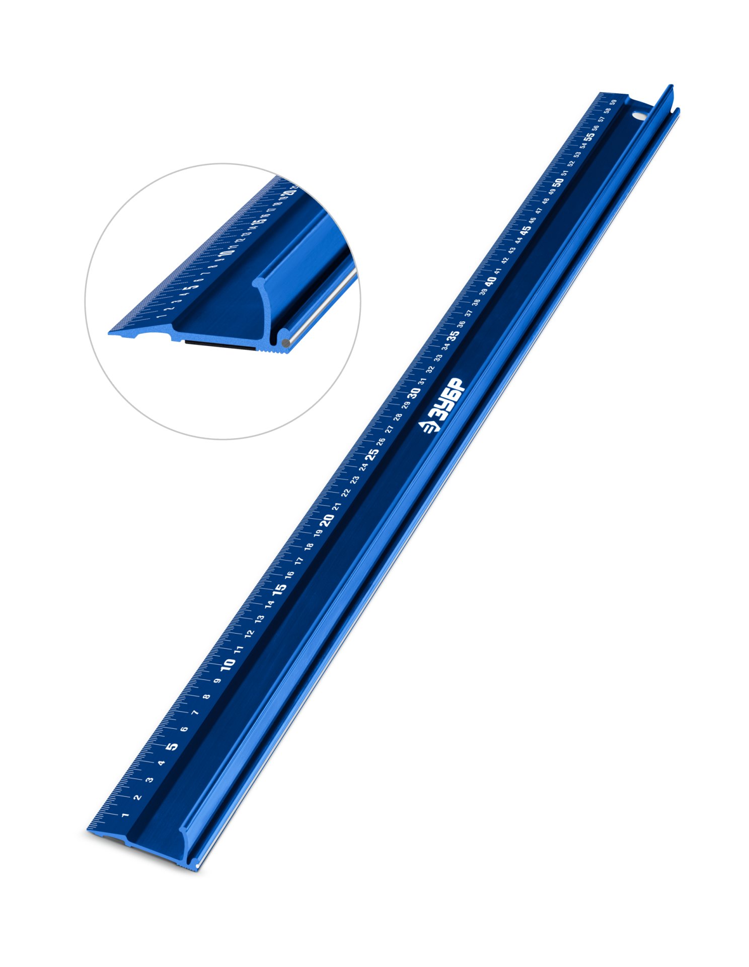 Усиленная алюминиевая линейка ЗУБР 0,6 м, со стальной направляющей, Профессионал 34382-60 - предназначена для разметочных работ и контроля геометрических размеров изделий. Мощное алюминиевое полотно упрощает разметку. Стальной стержень в кромке, защищает от износа, как линейку, так и инструменты.