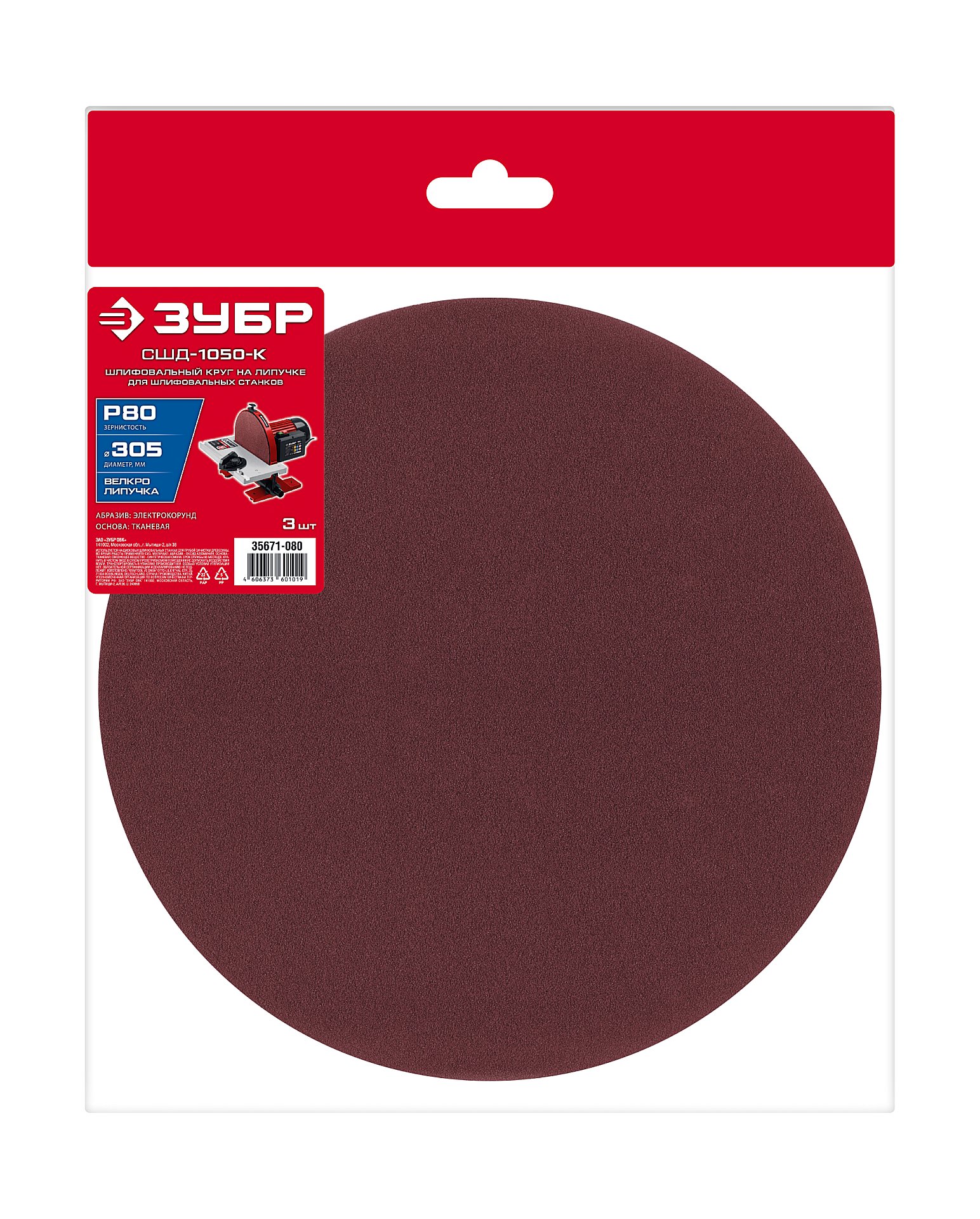 Шлифовальный круг на липучке ЗУБР СШД-1050-К 305 мм, Р80, 3 шт. 35671-080 - применяются на орбитальных шлифовальных машинках и электрических дрелях с опорной тарелкой для обработки дерева, металла, пластика и других материалов.