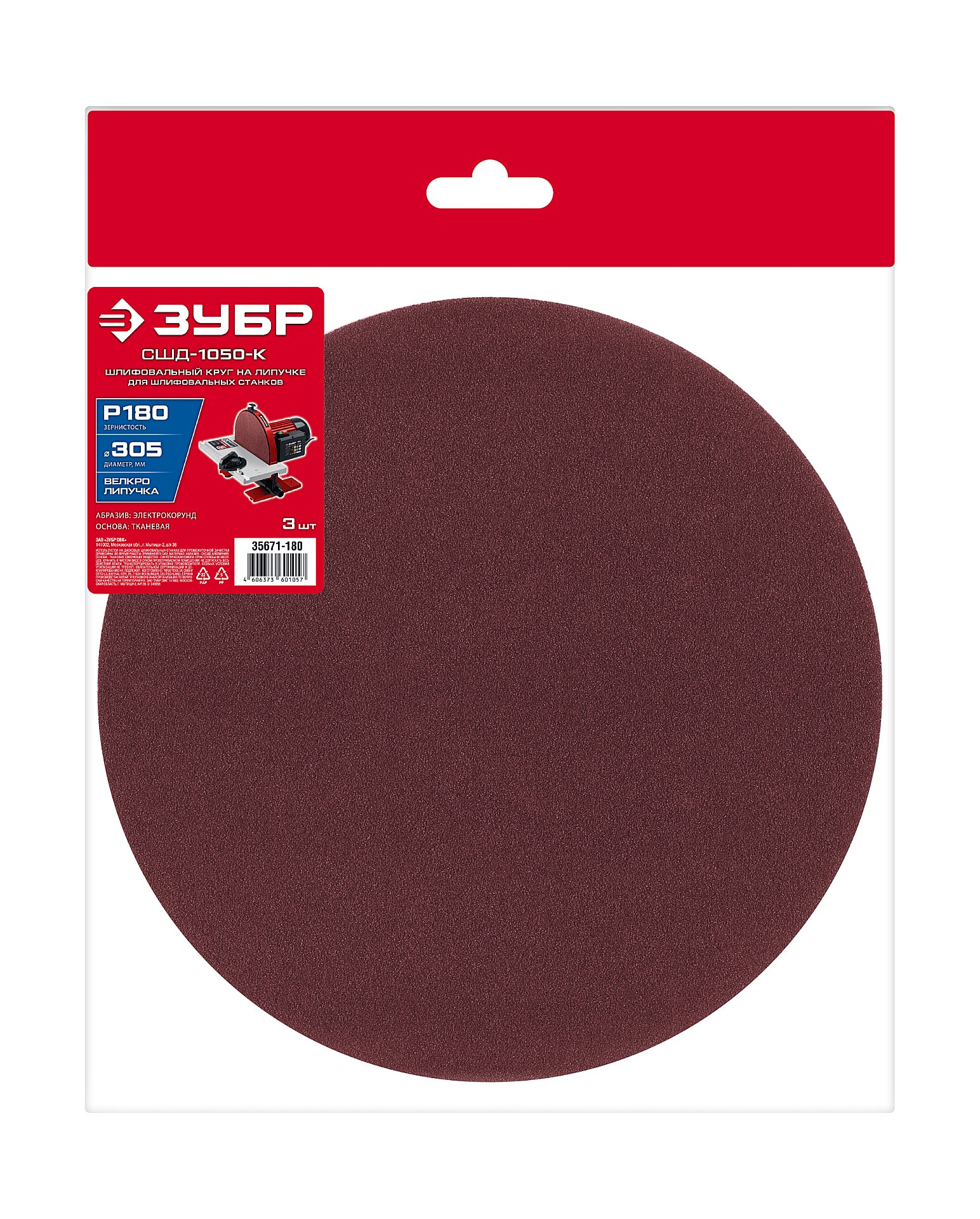 Шлифовальный круг на липучке ЗУБР СШД-1050-К 305 мм, Р180, 3 шт. 35671-180 - применяются на орбитальных шлифовальных машинках и электрических дрелях с опорной тарелкой для обработки дерева, металла, пластика и других материалов.