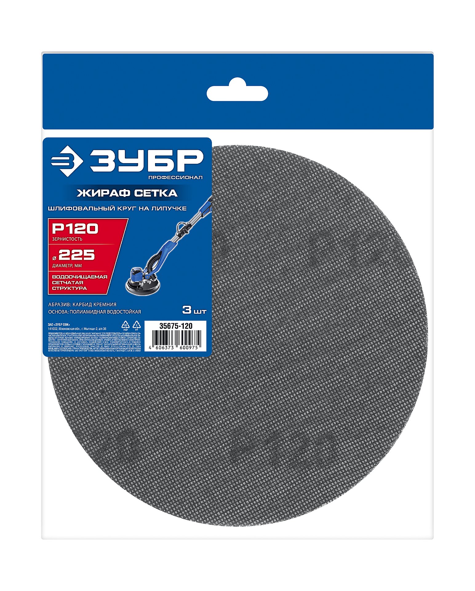 Сетчатый шлифовальный круг на липучке ЗУБР Жираф СЕТКА 225 мм, Р120, 3 шт., Профессионал 35675-120 - применяются на орбитальных шлифовальных машинках и электрических дрелях с опорной тарелкой для обработки дерева, металла, пластика и других материалов.