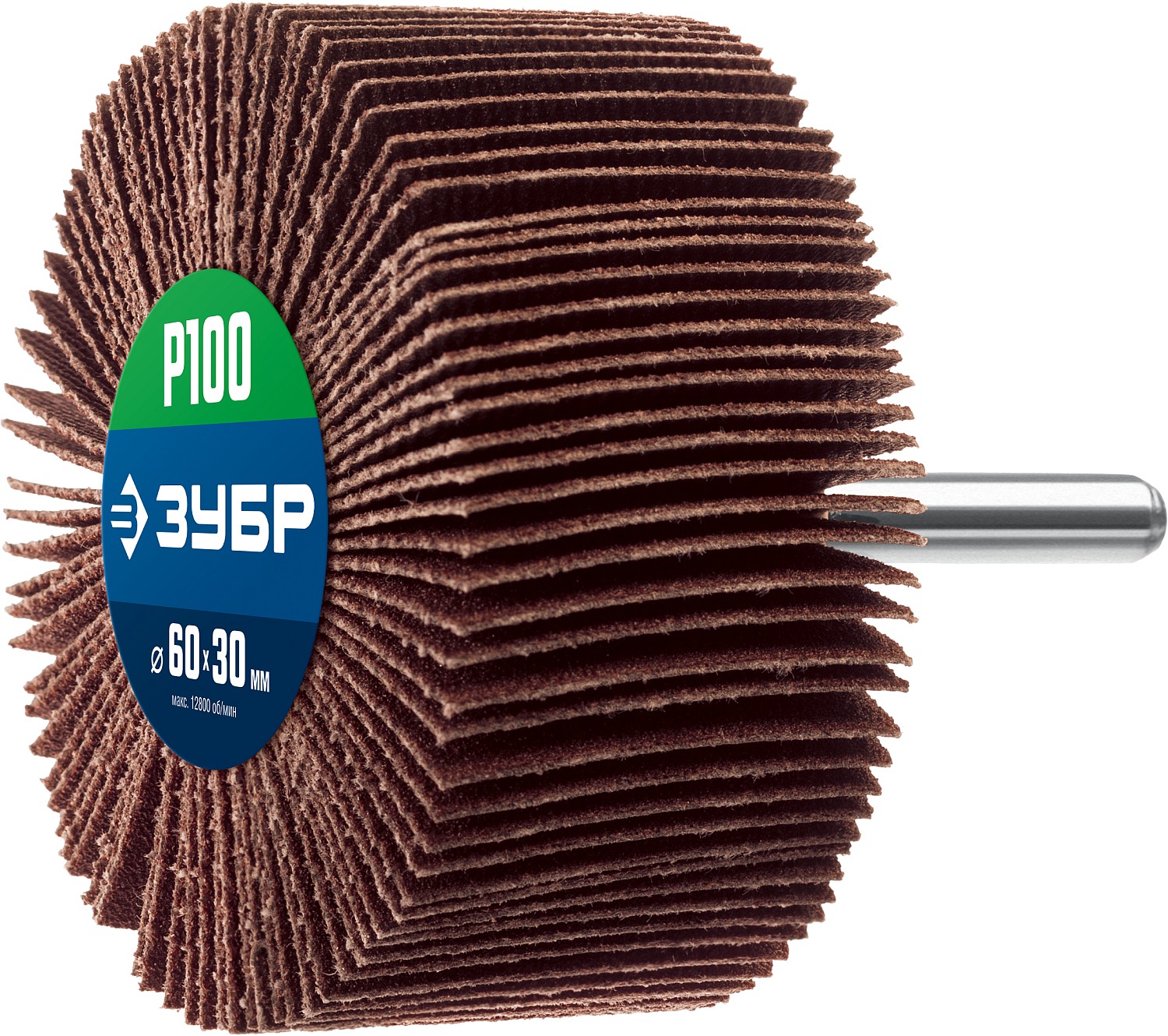 Круг шлифовальный лепестковый ЗУБР d 60 x 30 мм, P100, на шпильке d 6 мм, Профессионал арт. 36602-100_z01 - применяется для шлифовальных работ на электродрелях и шуруповертах в безударном режиме при обработке металла, древисины, пластика и других материалов.