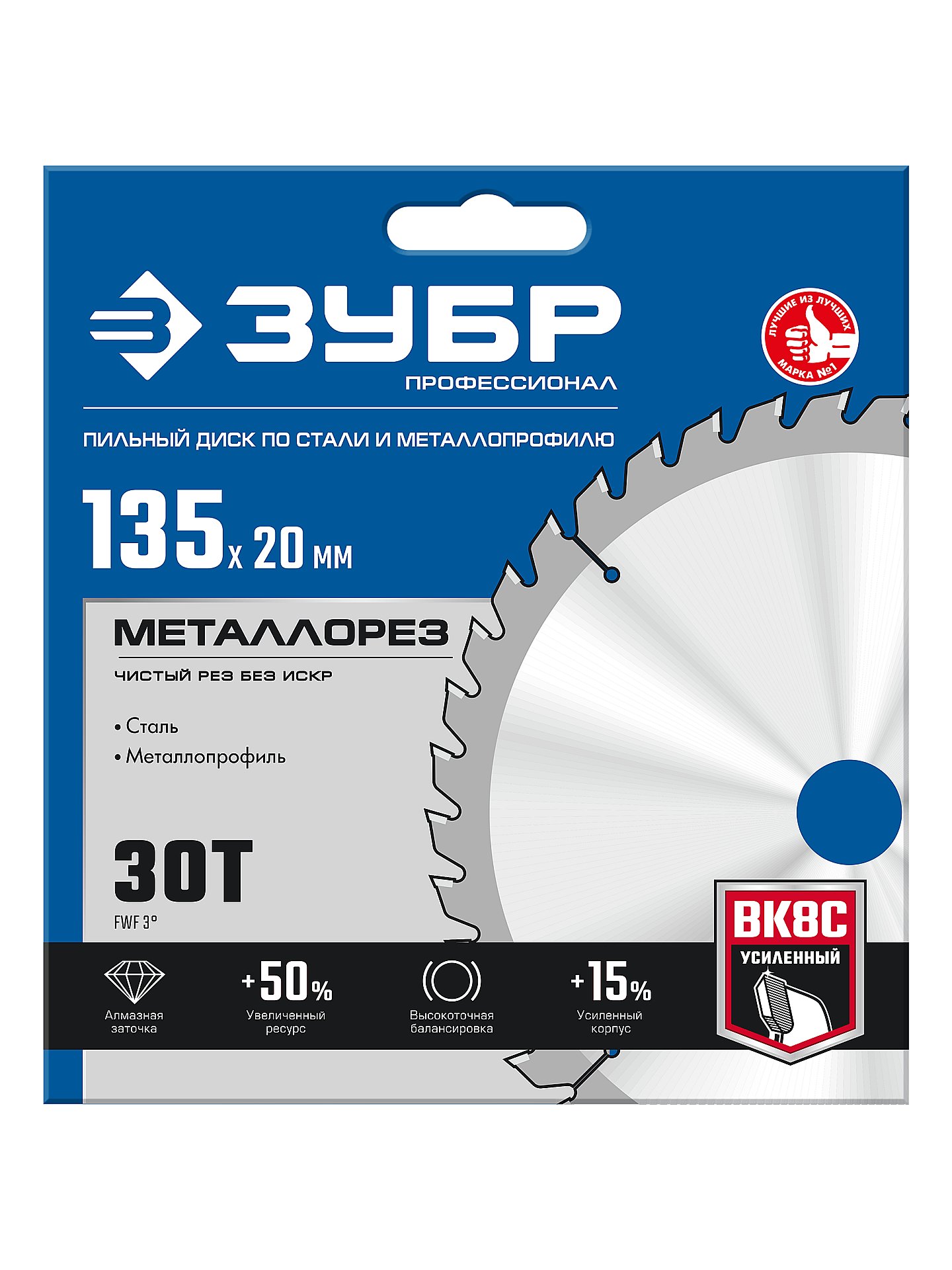 Диск пильный по металлу и металлопрофилю ЗУБР Металлорез 135 х 20 мм, 30Т, Профессионал 36932-135-20-30 - для продольного, поперечного и углового распила металла, сталей и металлопрофиля на циркулярных, торцовочных и станковых пилах.