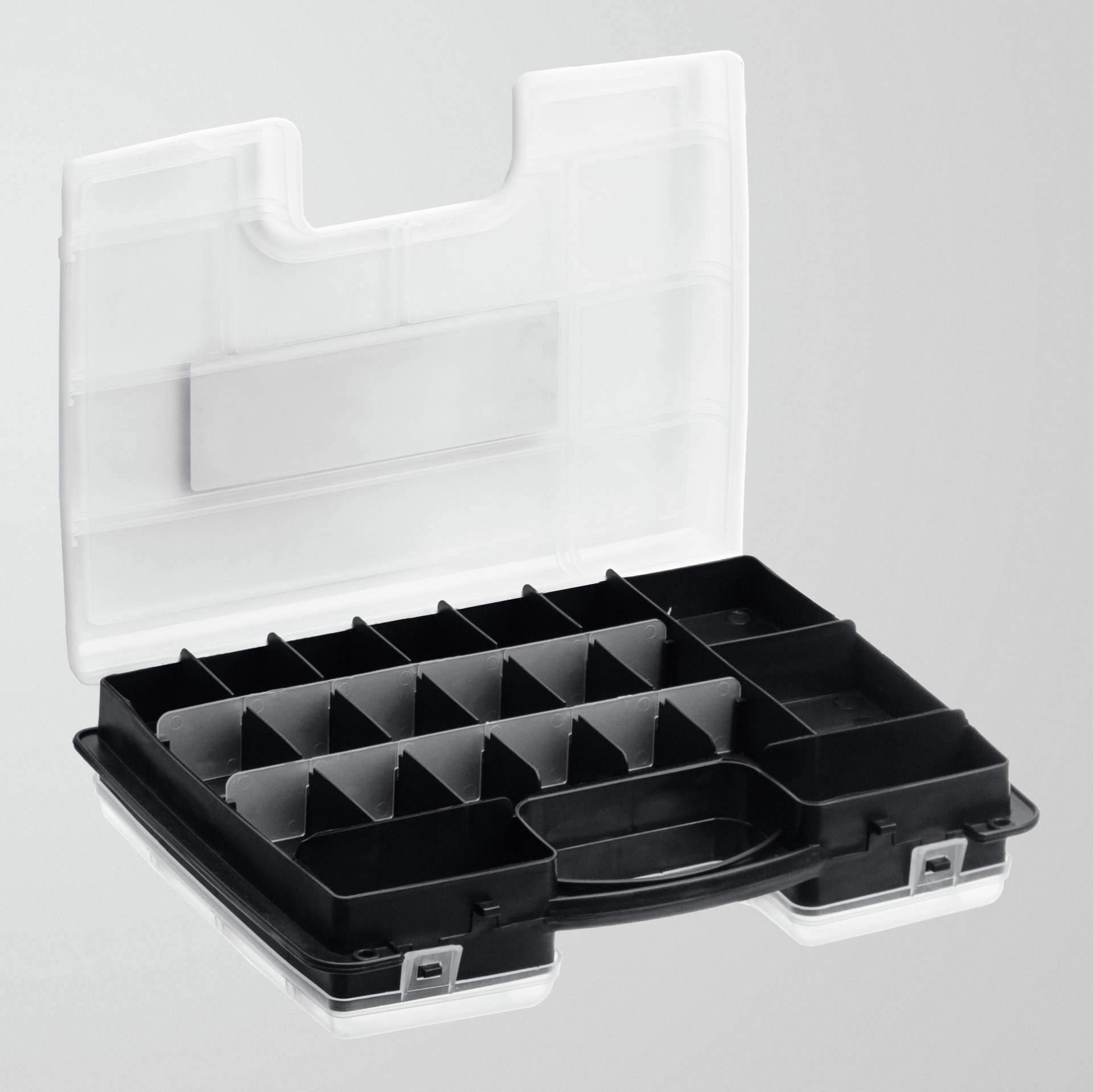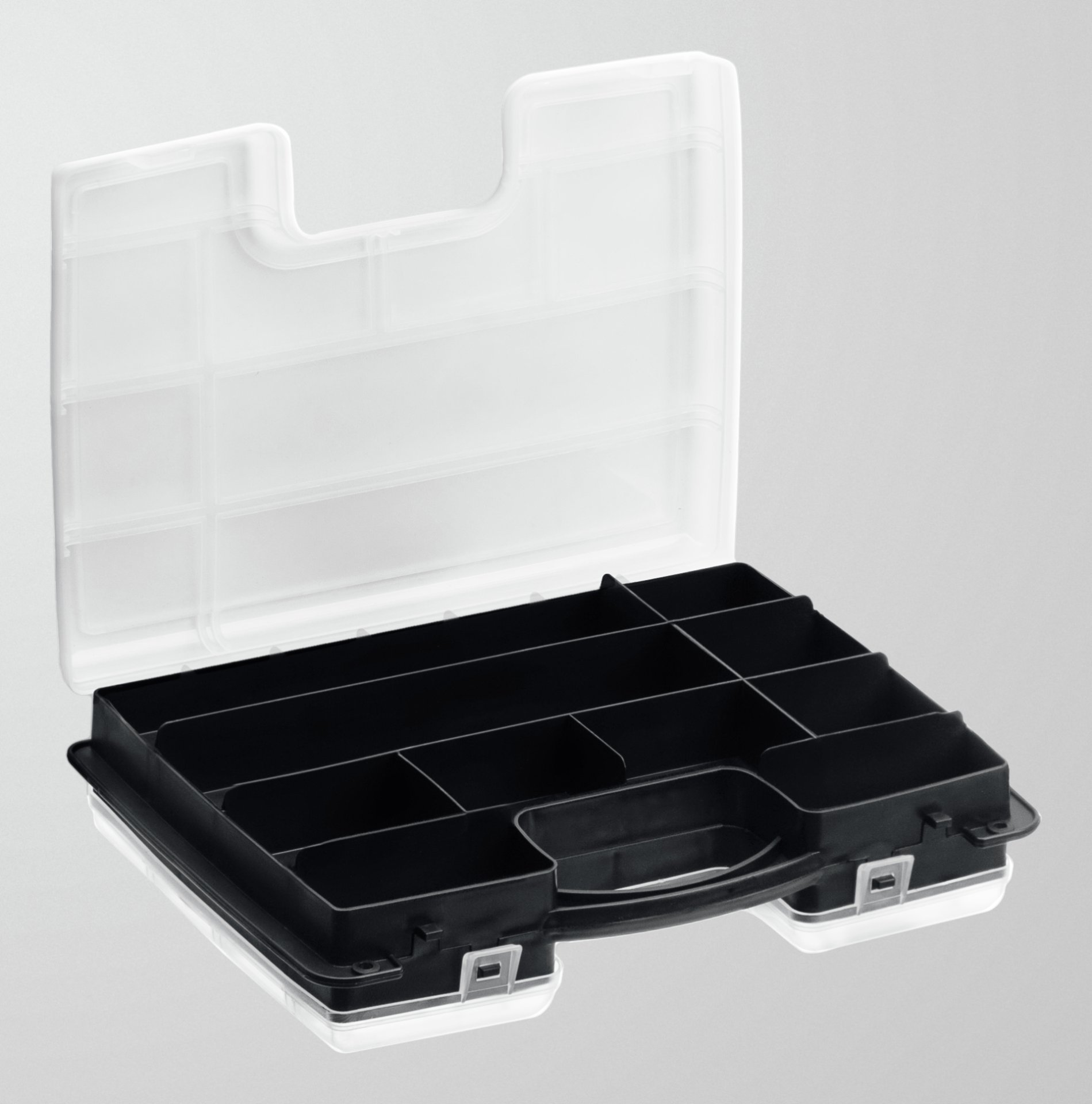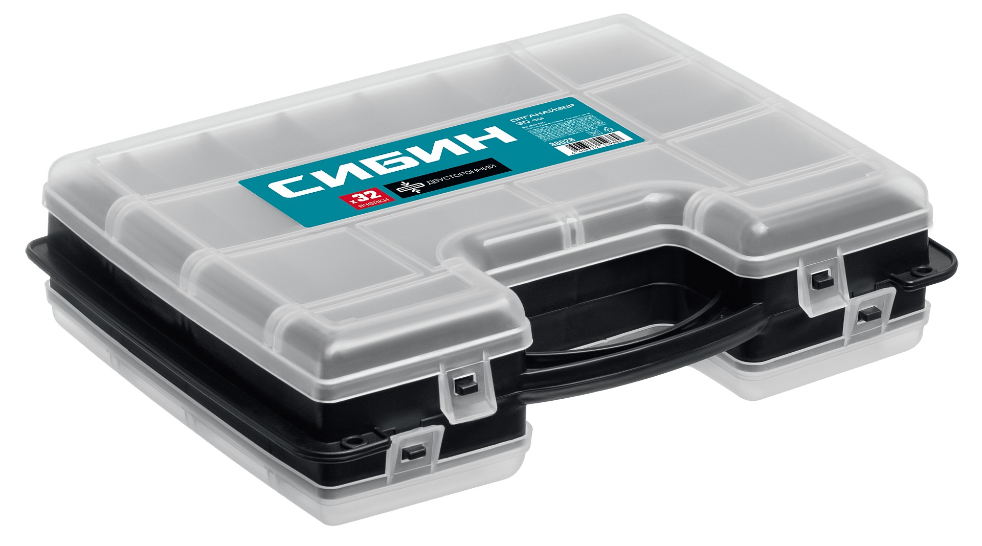 Пластиковый двухсторонний органайзер СИБИН 295 х 220 х 76 мм 38028 - предназначен для размещения различных видов крепежа, расходников для электроинструмента и т.д. Двусторнний.