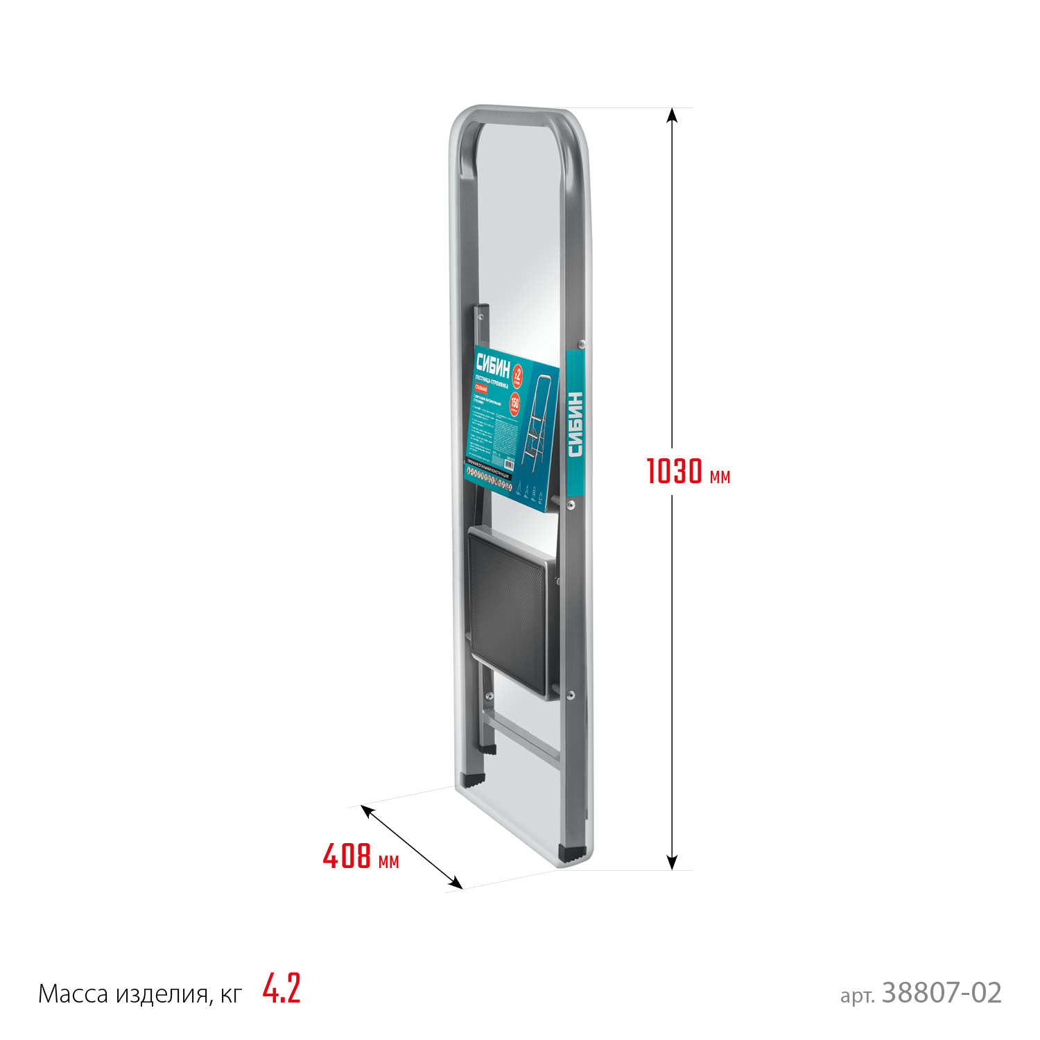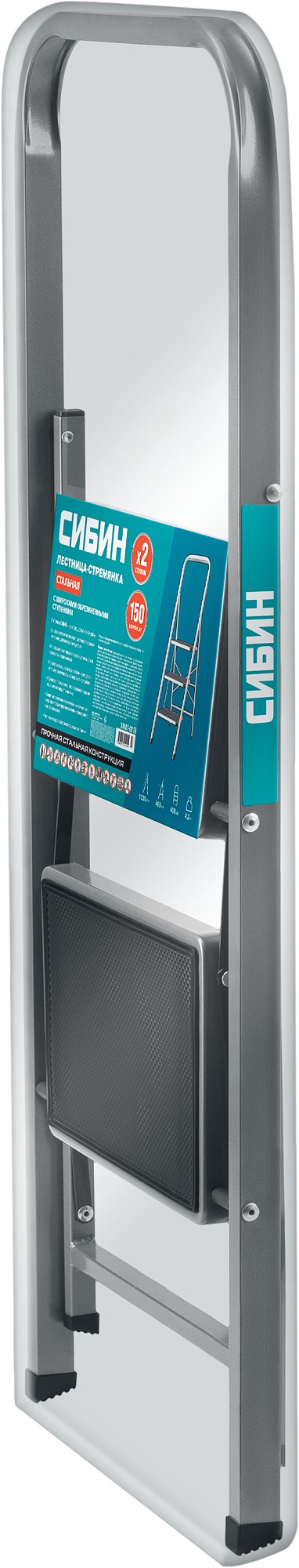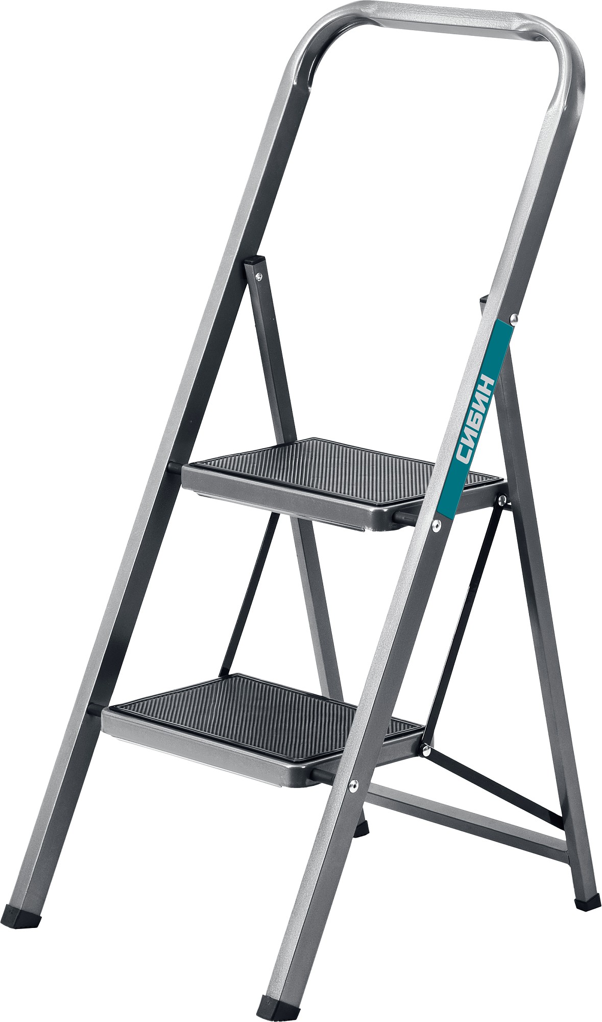 Стремянка СИБИН 2 ступени, 46 см, c широкими обрезиненными ступенями, стальная 38807-02_z02 - предназначена для проведения различных работ на высоте, как в быту, так и на производстве. Надежная конструкция в сочетании с высококачественными материалами обеспечивают легкость и удобство в эксплуатации.