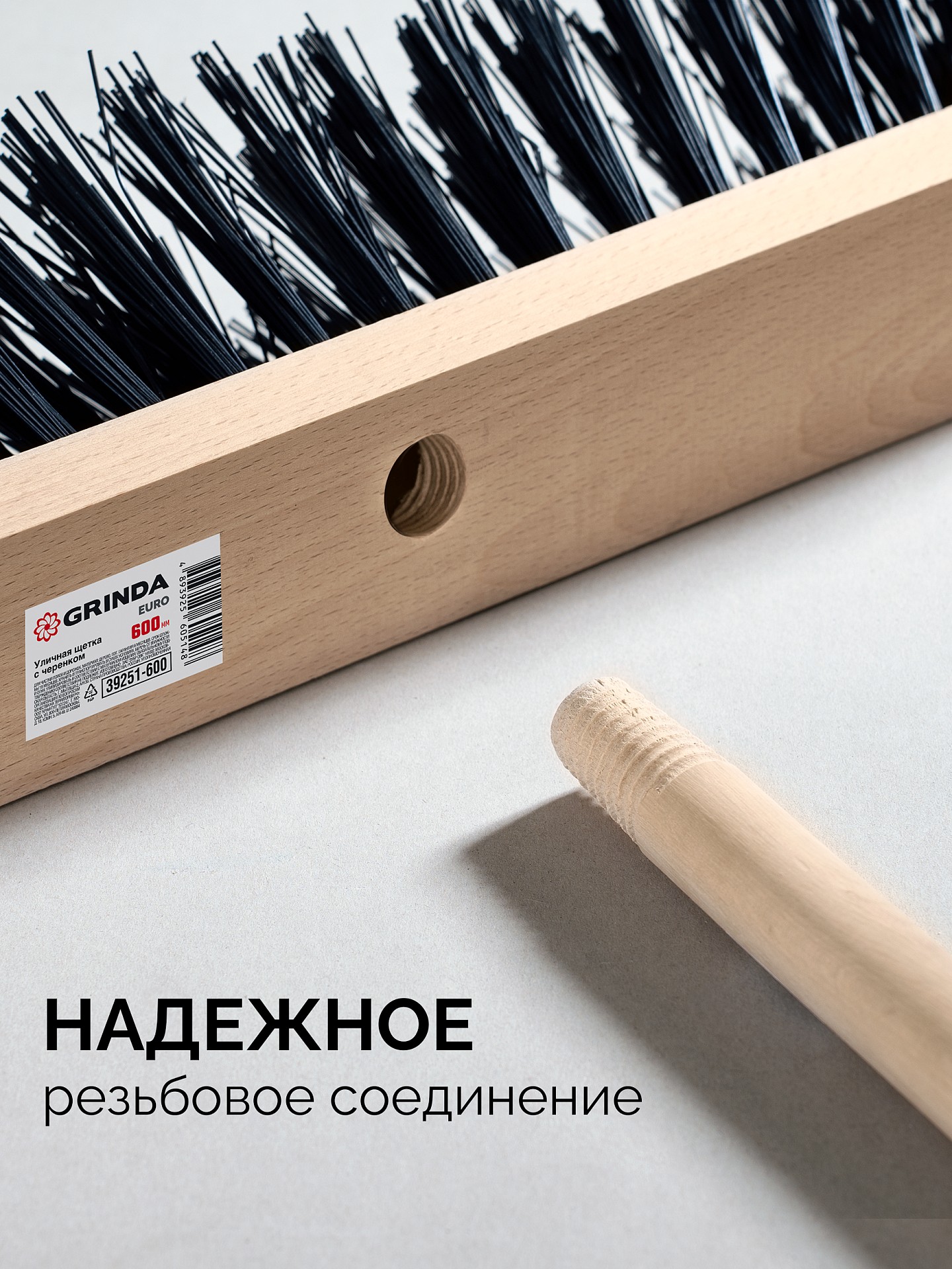 Уличная щётка с черенком, буковая колодка 60см, шлифованный черенок из берёзы 120см (d22мм) щетина 70мм, 5-рядная GRINDA EURO 39251-600 - предназначена для уборки газонов и дорожек.