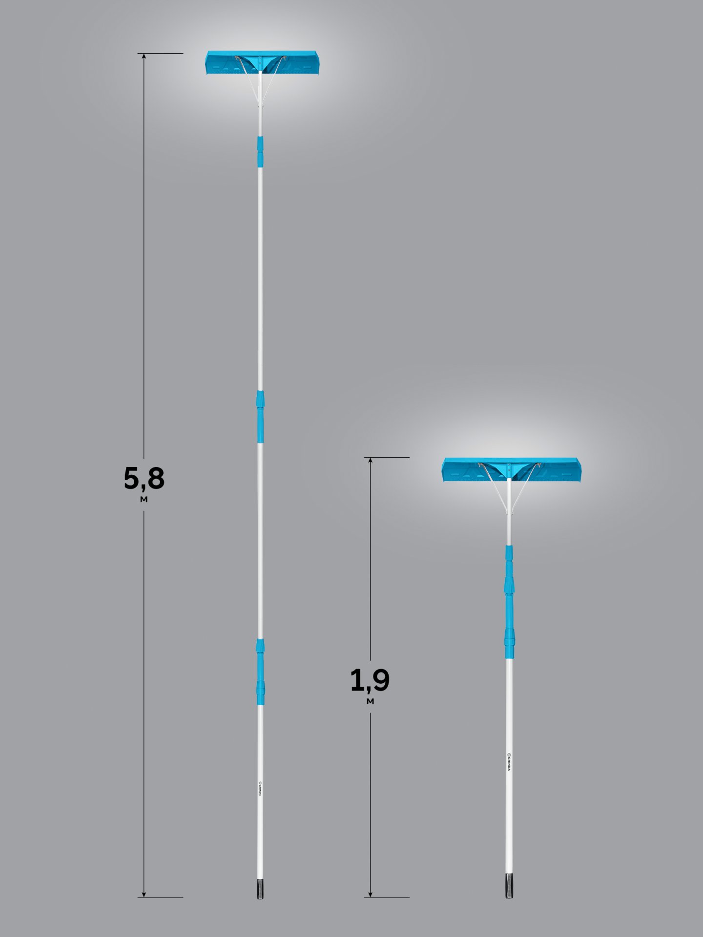 Скребок для удаления снега с крыши, телескопический,1,9 - 5,8 м, 620 мм, GRINDA PROLine 39945 - предназначен для удаления снега с крыш, навесов, козырьков, теплиц. Эргономичная и надежная конструкция для удобства и продуктивной работы.
