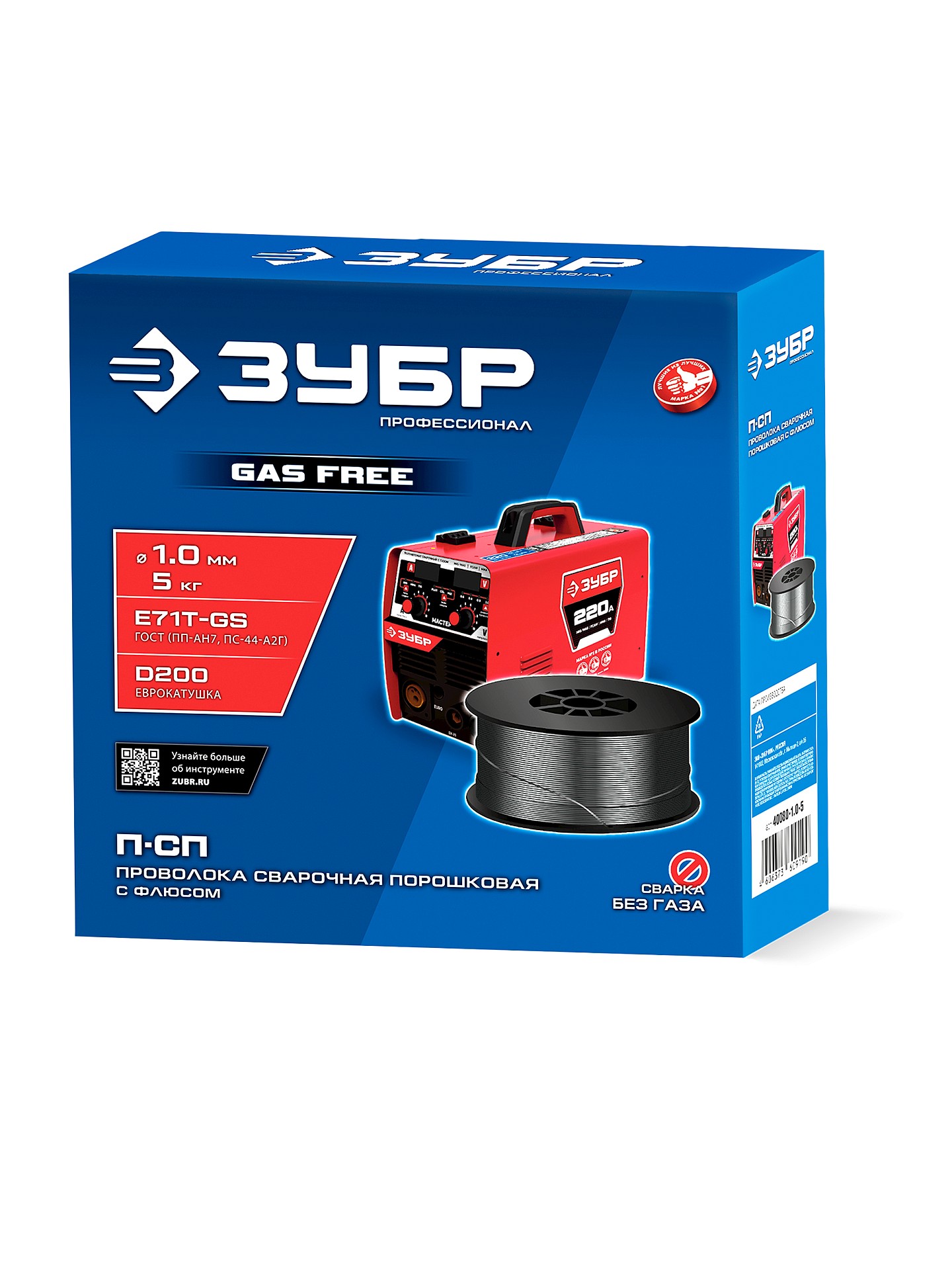 Порошковая сварочная проволока (с флюсом) ЗУБР П-СП, d 1.0 мм, 5 кг, тип E71T-GS, Профессионал 40080-1.0-5 - предназначена для полуавтоматических сварочных аппаратов и применяется для сварки без использования газа.