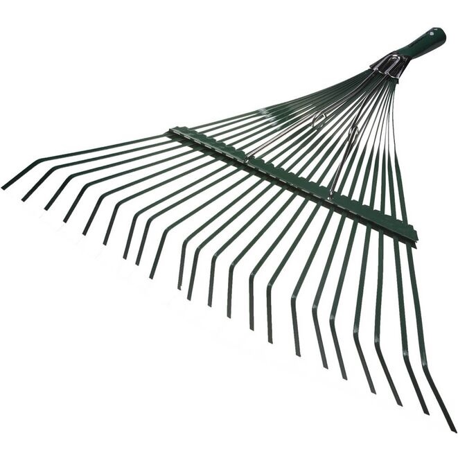 Грабли веерные GRINDA 421871, применяется для сбора опавших листьев и скошенной травы на садово-огородных участках. Рабочая часть изготовлена из стали высочайшего качества. Плоские зубцы изготовлены из углеродистой стали и имеют защитное покрытие от коррозии. Распорка-компенсатор усиливает пружинящий эффект и дополнительно упрочняет конструкцию изделия.