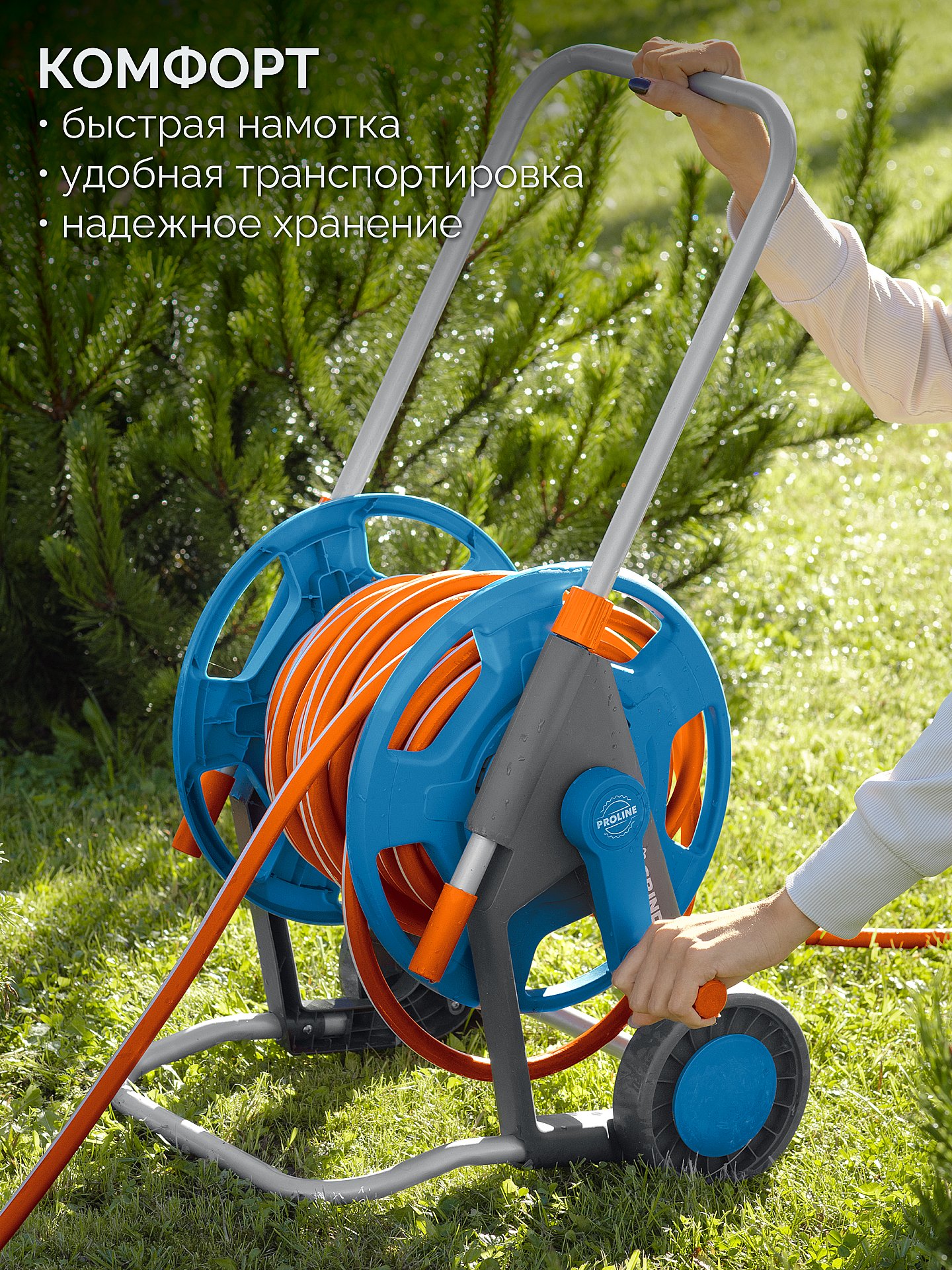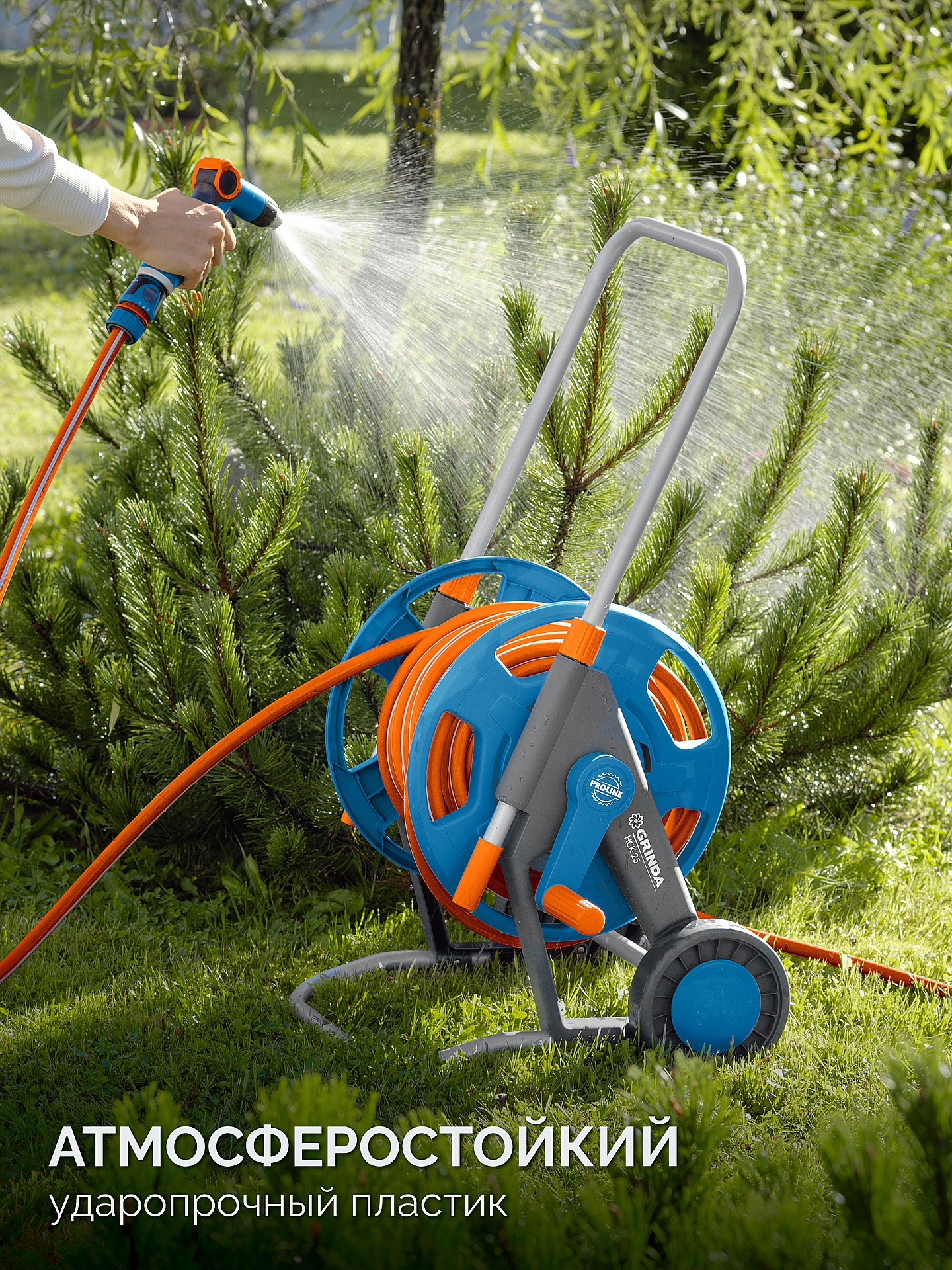 Катушка со шлангом в комплект GRINDA HCK-25, шланг 25м x 1/2″, поливочный набор 4 предмета, усиленные колеса, телескопическая ручка, ProLine 428461 - применяется для организации системы полива на садовом участке. Современные материалы и прочная конструкция гарантируют надежность и долгий срок службы набора.