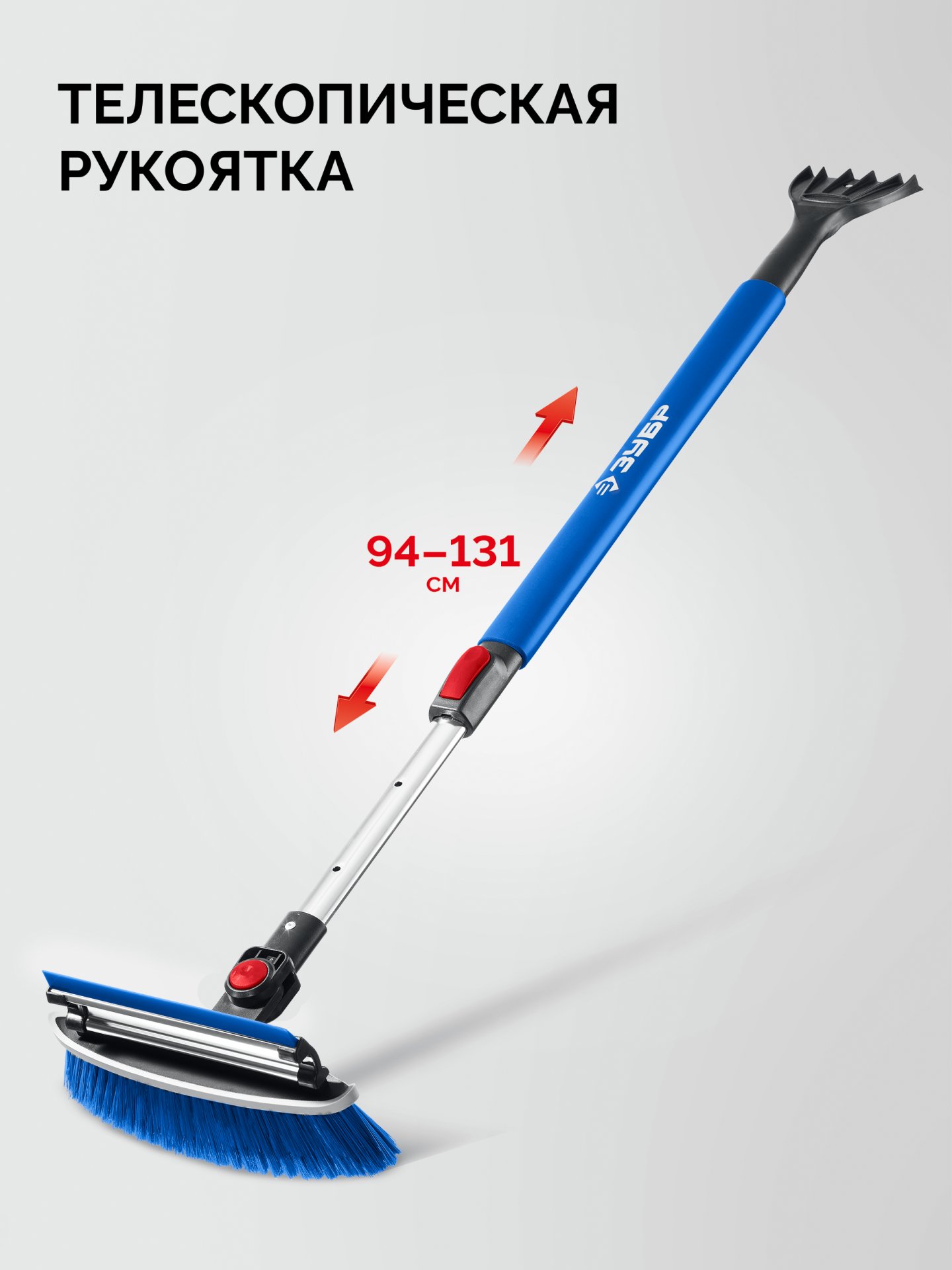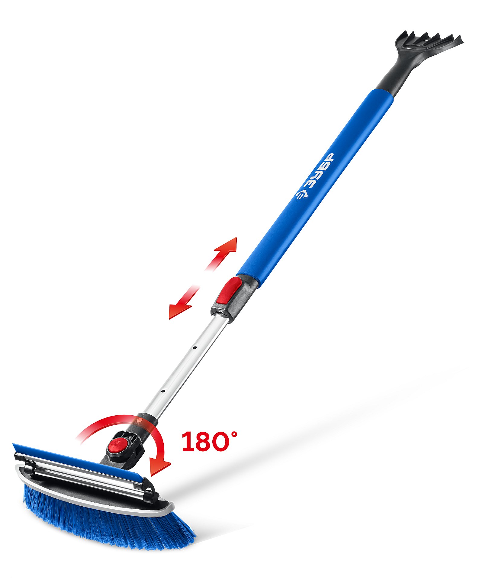 Телескопическая щётка с поворотной головой и водосгоном от снега автомобильная, 940-1310 мм, ЗУБР Профессионал 61063 - применяется для очистки поверхности автомобиля от снега и льда. Многофункциональная щетка-сметка поможет очистить снег с поверхности автомобиля, убрать воду и грязь со стекол.