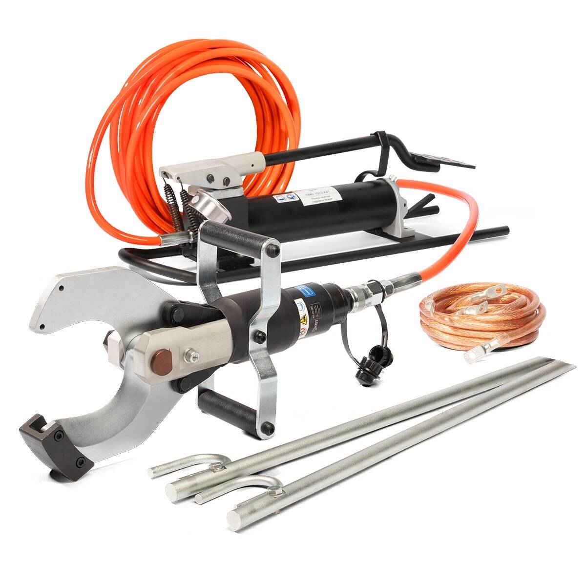 НГПИ-85 Комплект гидравлических ножниц с ножной помпой для резки кабелей под напряжением, КВТ 61843 — предназначен для резки кабелей диаметром до 85 мм под напряжением до 35 кВ
