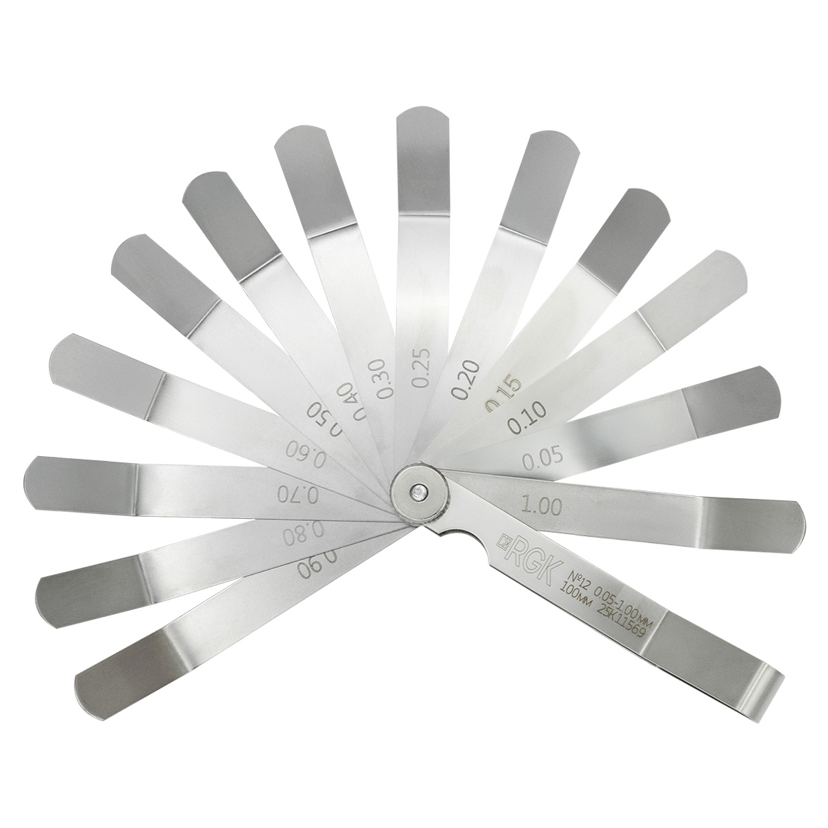 Набор щупов №12 (0,05-1,00) — представляет собой объединенный в общем корпусе-обойме комплект из 13 мерных пластин, предназначенный для определения величины зазоров между сопряженными деталями и элементами конструкций в диапазоне от 0,05 до 0,30 мм с шагом 0,05 мм и от 0,40 до 1,00 с шагом 0,1 мм.