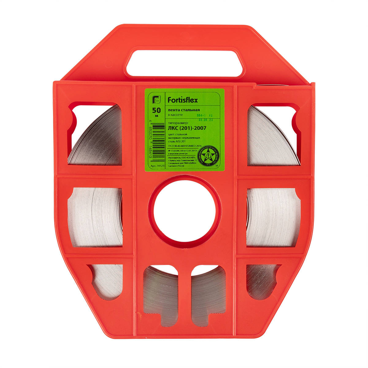 Лента бандажная ЛКС (201)-2007 (50м) в кассете Fortisflex арт. 74123 — предназначена для крепления кронштейнов и крюков кабельной арматуры, а также рекламных щитов и дорожных указателей на столбах освещения и опорных конструкциях.