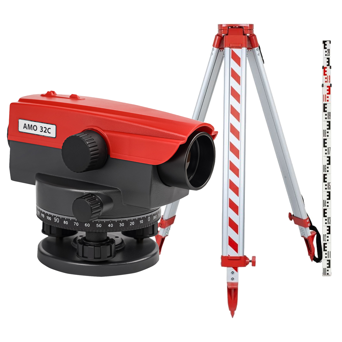 Комплект оптический нивелир AMO 32C + штатив AMO A45 + рейка AMO S3 — обеспечивает увеличение до 32 раз, позволяя четко видеть деления рейки на дистанции до нескольких десятков метров.
