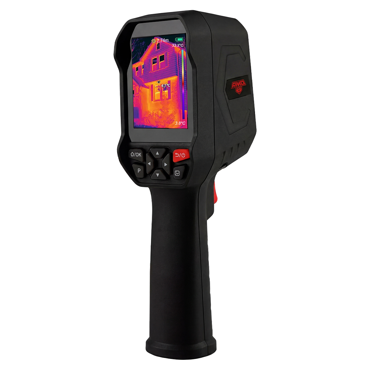 Точность измерения AMO T833 составляет ±2 °C от измеренного значения. Такая низкая погрешность позволяет достоверно оценивать состояние оборудования и процессов, например, при диагностике перегрева контактов в электрощитах, выявлении участков с плохой теплоизоляцией в зданиях или контроле подшипников в работающем механизме.