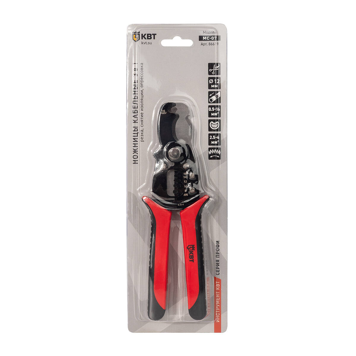 МС-07 Ножницы кабельные, КВТ 86619 — надежный инструмент для резки проводов с функцией снятия изоляции.