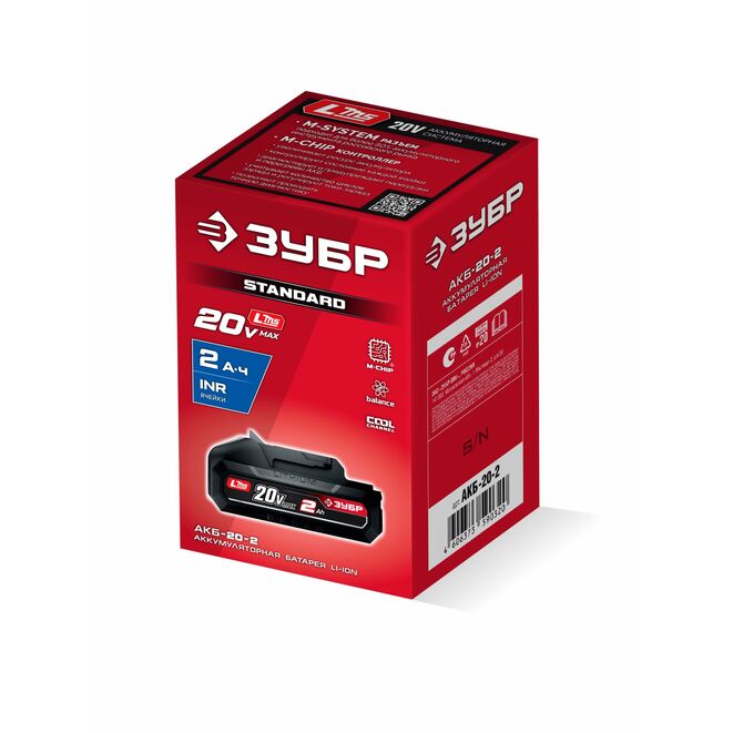 Аккумулятор LMS ЗУБР АКБ-20-2, 20 В, 2.0 А·ч - предназначена для обеспечения питания аккумуляторного инструмента системы LMS.