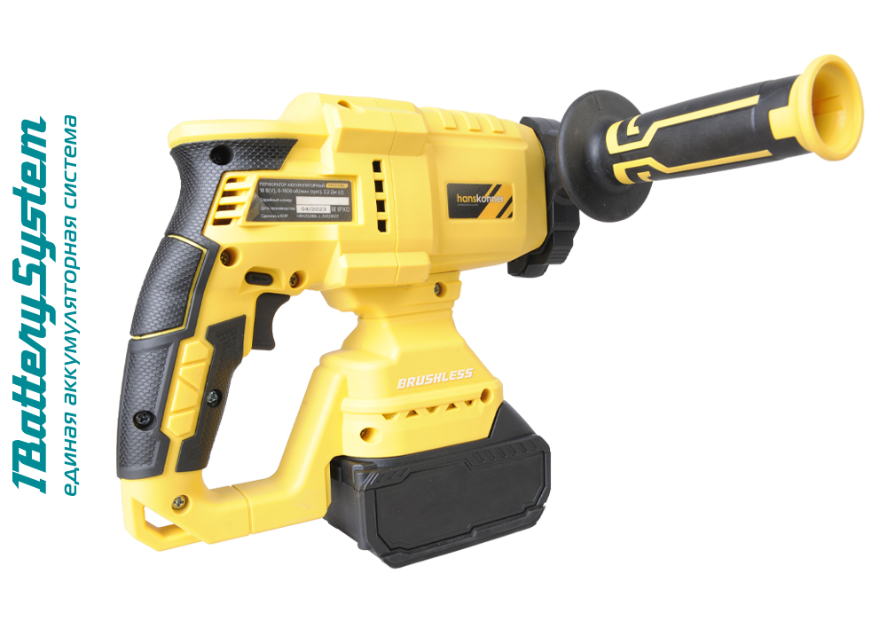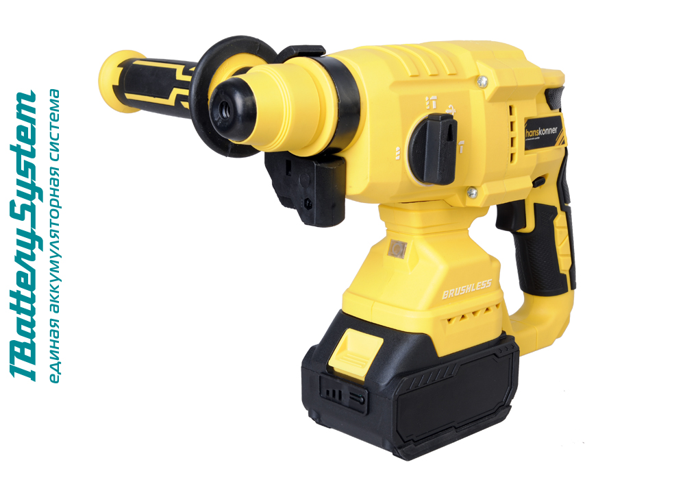 Аккумуляторный перфоратор Hanskonner HRH2024BL 1BatterySystem - предназначен для безударного и ударного сверления отверстий в различных материалах (при использовании соответствующих сверл и буров), а также для работы в режиме долота (при установке соответствующего инструмента).