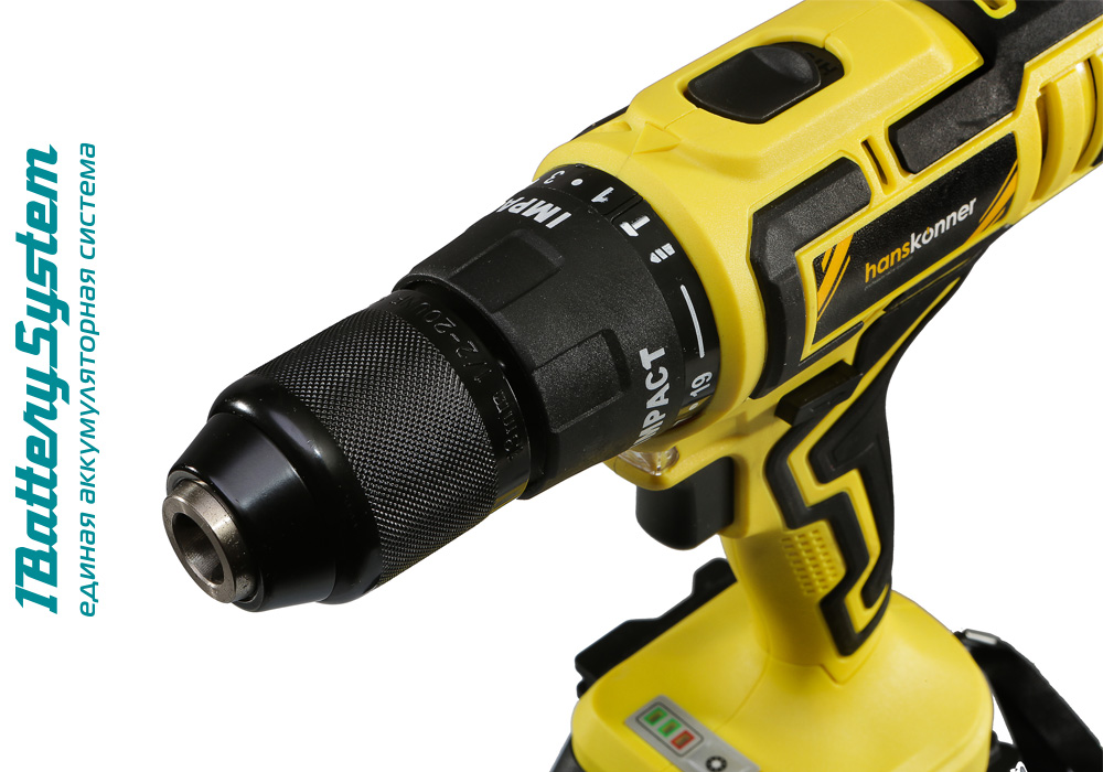 Аккумуляторная ударная дрель-шуруповерт Hanskonner HCD1855RI подходит для любых работ, в том числе в стесненных условиях и труднодоступных местах без снижения производительности и потери качества работ.