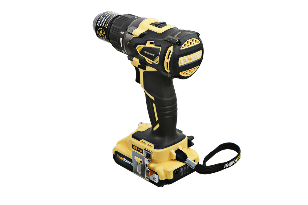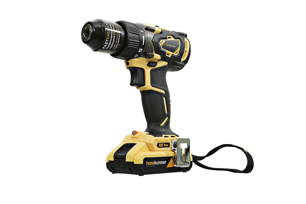Hanskonner HCD1865BL Unibattery – универсальный аккумуляторный 18В ударный двухскоростной шуруповерт – относится к линейке аккумуляторной системы Unibattery, обеспечивающей совместимость одного и того же аккумулятора с целым рядом наименований инструмента. Является одним из самых мощных и функциональных шуруповертов в своем классе и демонстрирует высокую эффективность как при работах с крепежом, так и при сверлении в различных материалах. Модель оснащена 18В бесщеточным двигателем, характеризующимся высокой производительностью и минимальным расходом энергии. Кроме того, бесщеточный мотор отлично справляется с кратковременными перегрузками и не склонен к перегреву.