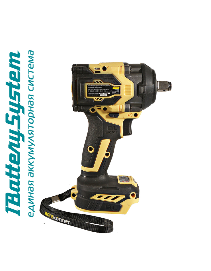 Аккумуляторный ударный гайковерт Hanskonner HCD20600BL 1BatterySystem - предназначен для ударного закручивания / откручивания различных крепежных элементов.