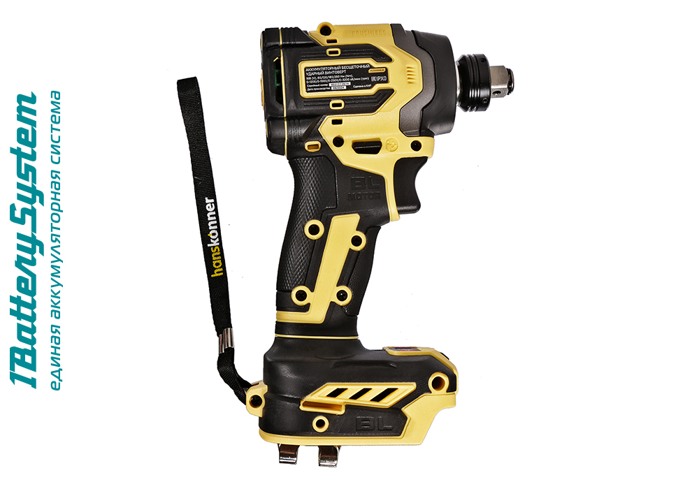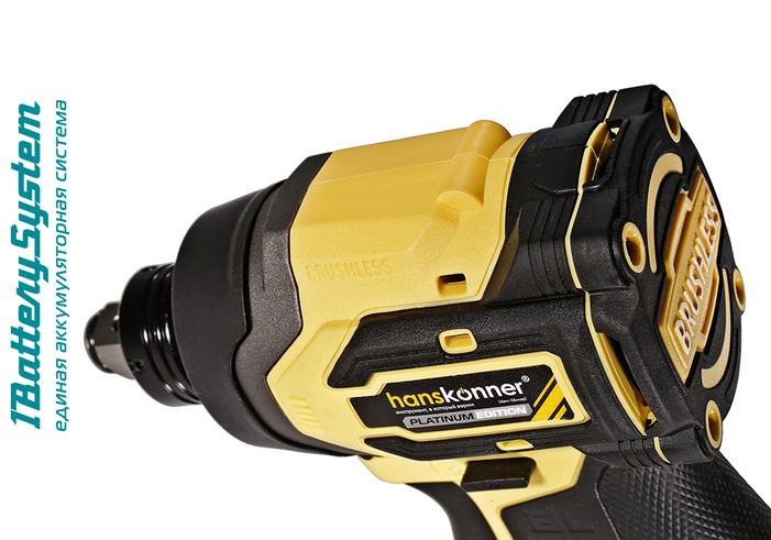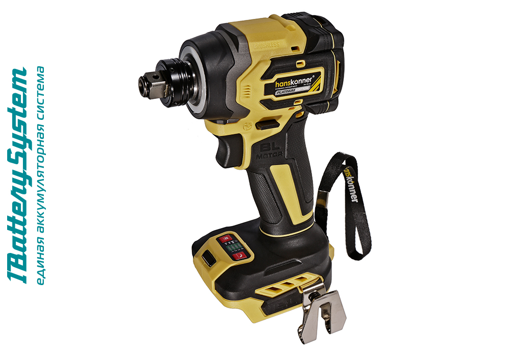 Hanskonner HCD20280BLW это 18В аккумуляторные ударные винтоверт и гайковерт в одном инструменте. Двойной функционал HCD20280BLW обеспечен благодяря предустановленному патрону с типом гнезда под квадрат 1/2&quot с внутренним HEX 1/4&quot. Инструмент является частью системы 1BatterySystem, обеспечивающей совместимость одного и того же аккумулятора с целым рядом наименований инструмента. Модель обладает максимально сбалансированной компоновкой: небольшие размеры корпуса и рукояти позволяют эффективное использование в условиях с затрудненным доступом, а нейтральный центр тяжести, и обилие прорезиненных противоскользящих поверхностей способствуют надежному хвату, и лучшему контролю. Винтоверт оснащен 18 В бесщеточным двигателем, характеризующимся на 30% лучшей производительностью в сравнении с коллекторными аналогами. Кроме того, бесщеточный двигатель отлично справляется с кратковременными перегрузками и не склонен к перегреву. Благодаря применению мощного планетарного механизма, Hanskonner HCD20280BLW уверенно демонстрирует высокие показатели крутящего момента (до 280 Н м), что позволяет работать с крепежом большой длины и диаметра. Винтоверт имеет четыре режима настройки момента затяжки: 60 Н м, 120 Н м, 180 Н м, 280 Н м – пользователь выбирает нужный, исходя из конкретного материала и крепежа. Модель оснащена функцией AutoStop, плавно останавливающей вал шпинделя сразу после откручивания крепежа. К особенностям Hanskonner HCD20280BLW стоит отнести эффективную LED-подсветку рабочей зоны WorkingLight с блоком коллиматорных линз, создающих направленный симметричный луч, а также индикатор остаточного заряда аккумулятора PowerCheck. Дополнительному комфорту использования способствуют специальная зацепная скоба крепления на пояс.