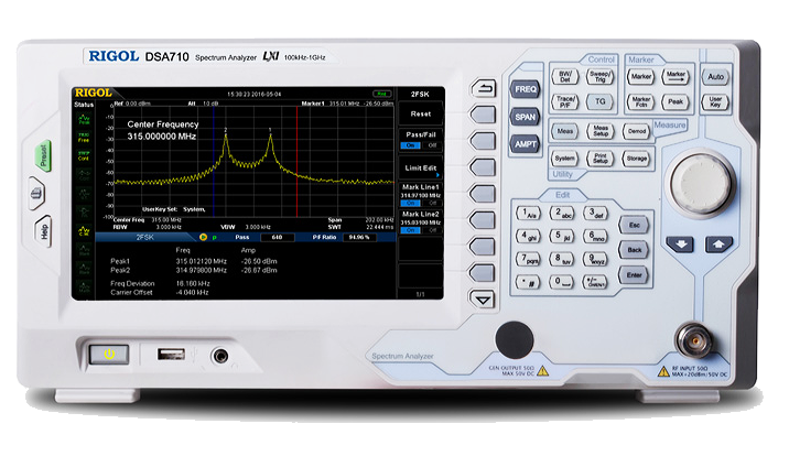 Анализатор спектра Rigol DSA710 – измерительное оборудование для анализа различных спектральных параметров сигналов, который можно приобрести с доставкой по России. Имеет диапазон (от 100 кГц до 500 МГц) и большую пропускную способность в режиме реального времени. Оснащен ярким цветным экраном и простым в использовании пользовательским интерфейсом. Дополнительно предусмотрено программное обеспечение Ultraspectrum.