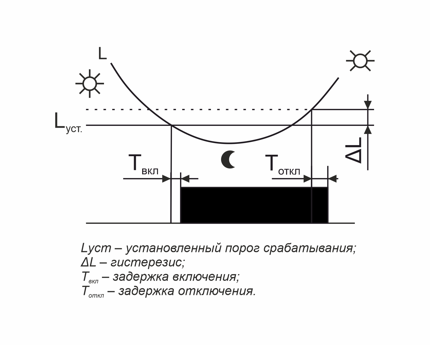 Монтаж на плоскость. Для автоматического включения освещения в сумерки и выключения на рассвете. Принцип работы основан на контроле уровня освещенности встроенным фотодатчиком. При снижении уровня освещённости ниже установленного замыкаются контакты реле и включается освещение. При увеличении уровня освещённости контакты размыкаются, освещение выключается. Порог срабатывания реле устанавливается потенциометром. Для защиты от ложных срабатываний при случайном освещении или затемнении фотодатчика предусмотрена задержка времени выключения и включения.Применяется для управления освещением улиц, витрин магазинов, реклам, автостоянок, строек и т.п., а также использования в устройствах промышленной автоматики.