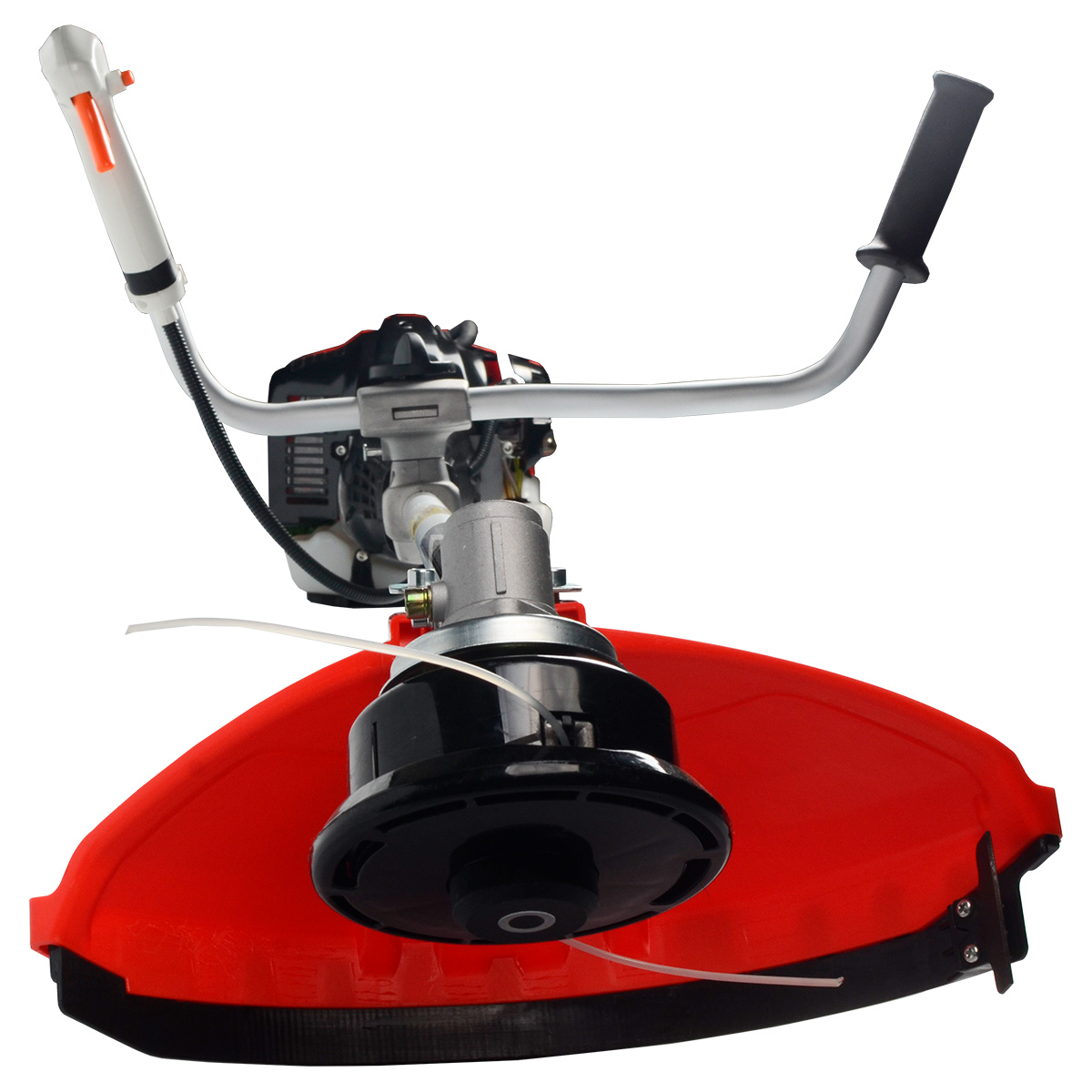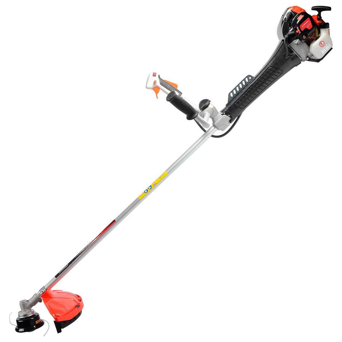 Бензокоса оснащена неразъемной штангой, на которой установлены редуктор и корпус сцепления, что значительно упрощает процесс сборки инструмента. Благодаря катушке с леской и трехлопастному ножу, этот триммер способен не только скашивать газонную траву, но и справляться с растительностью, имеющей более жесткие стебли.