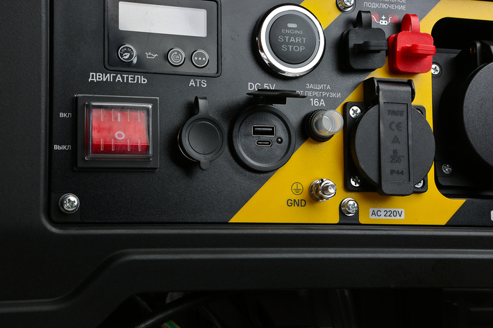 Мощность 6,5 кВт – подходит для питания бытовой техники, электроинструментов и строительного оборудования.