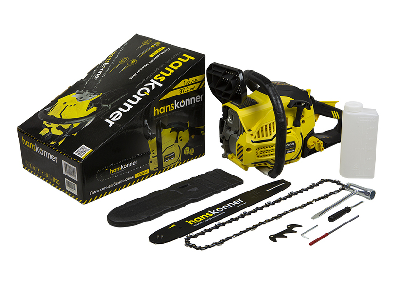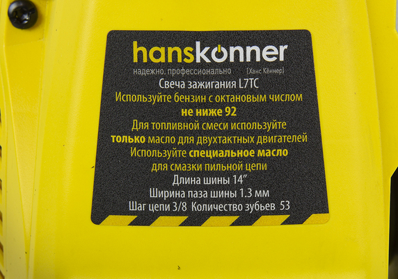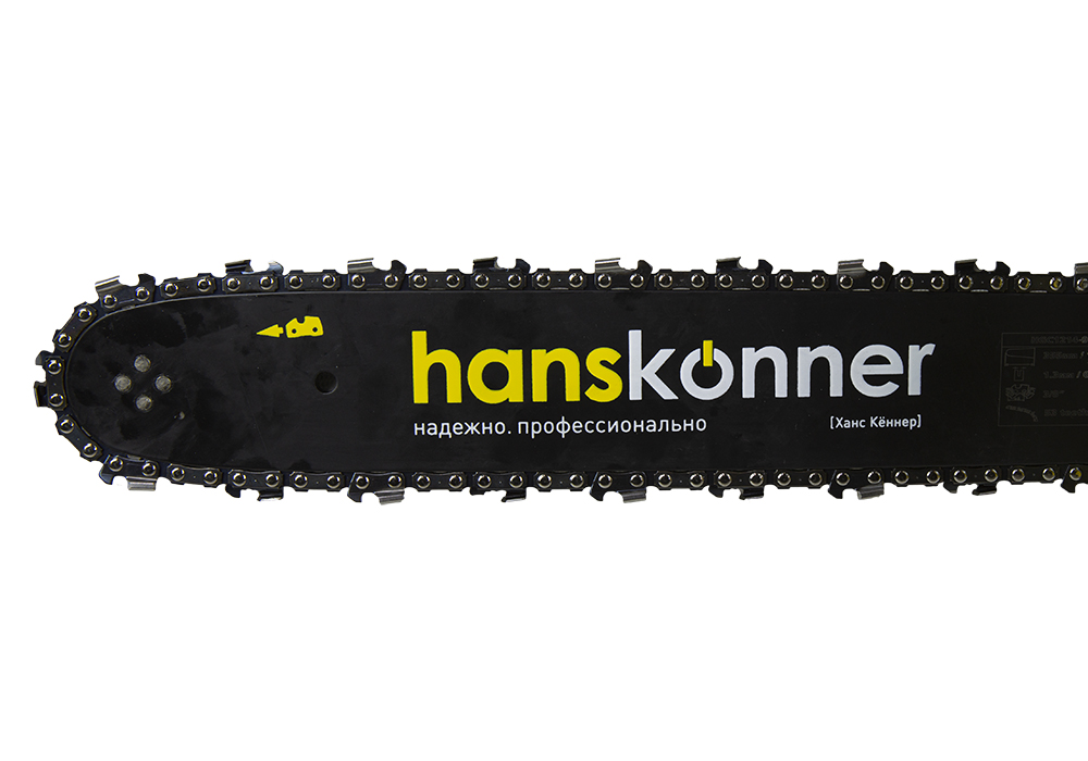 Бензопила Hanskonner HGC1214. Маневренная износостойкая модель с быстрым разгоном отличается удобством в эксплуатации подходит для выполнения работ в стесненных условиях.