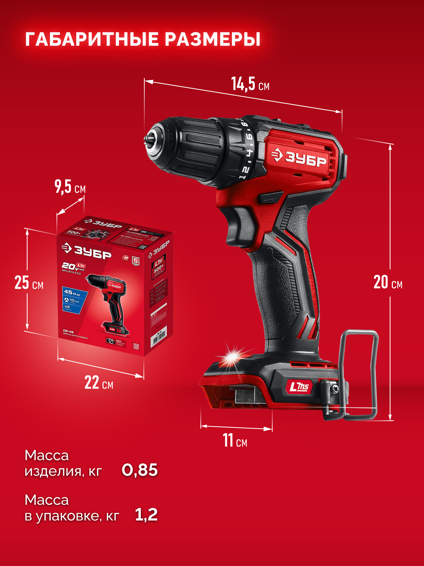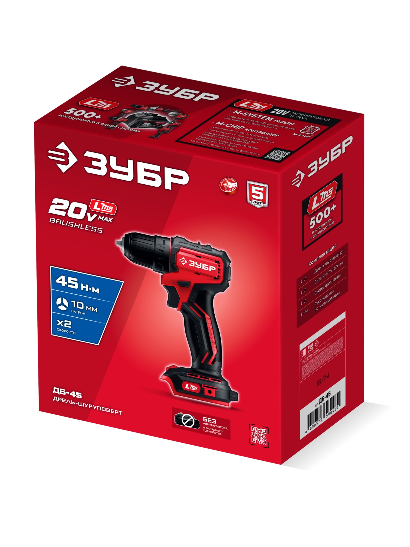 Бесщеточная дрель-шуруповерт ДБ-45 ЗУБР 20 В, 45 Н·м, без АКБ (LMS) - предназначена для сверления отверстий в различных материалах (при установке соответствующих сверл), закручивания/откручивания резьбовых соединений (при установке соответствующих бит), перемешивания ЛКМ (при установке соответствующих насадок).