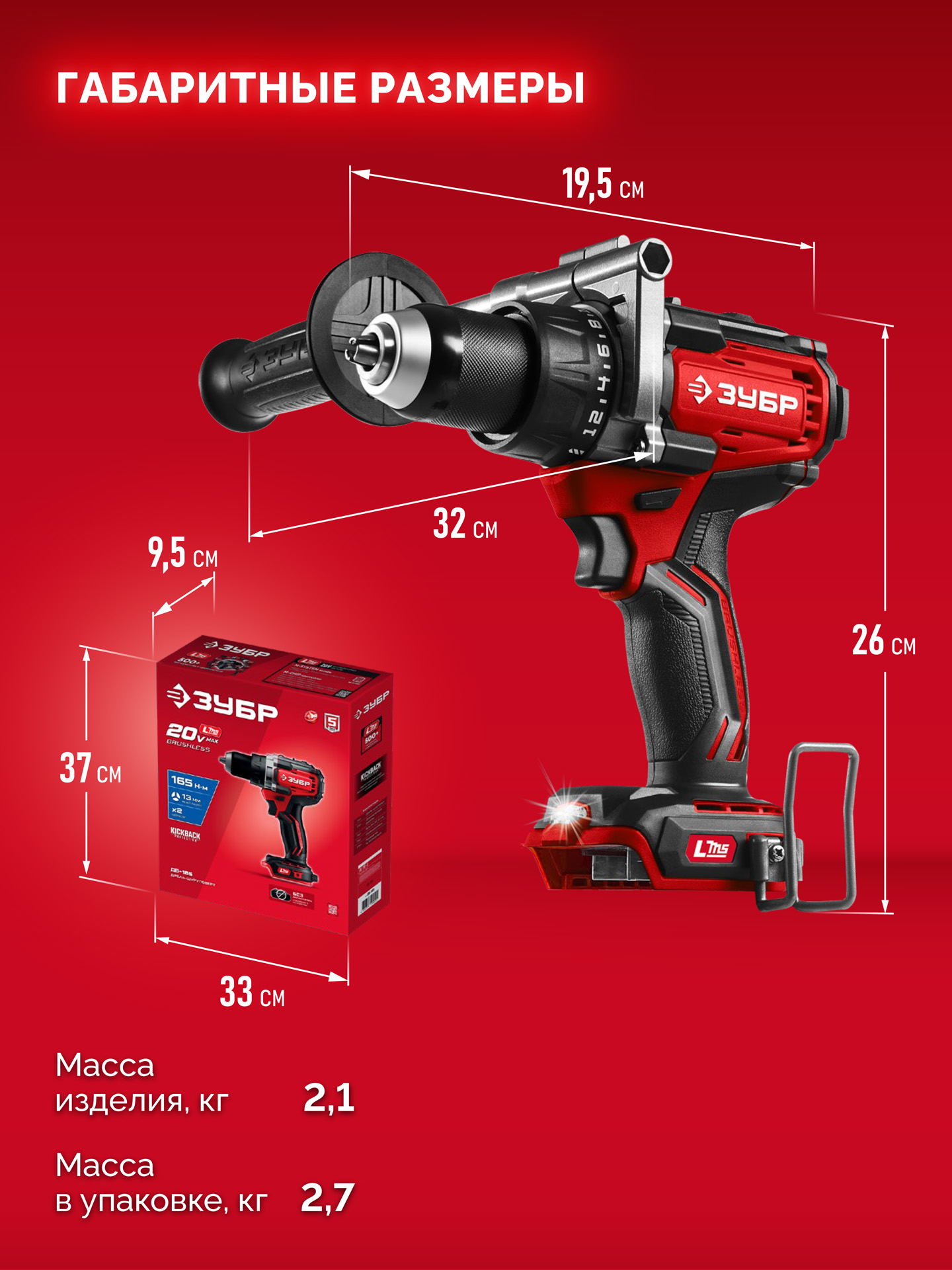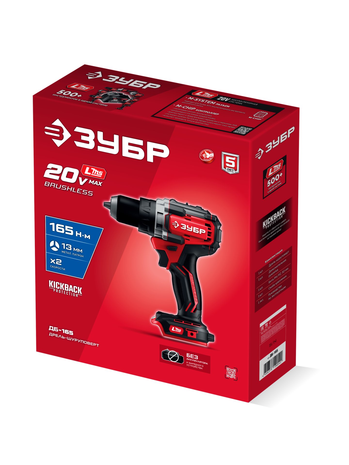 Бесщеточная дрель-шуруповерт ЗУБР 20 В, 165 Н·м, без АКБ (LMS) ДБ-165 - предназначена для сверления отверстий в различных материалах (при установке соответствующих сверл), закручивания/откручивания резьбовых соединений (при установке соответствующих бит), перемешивания ЛКМ (при установке соответствующих насадок).