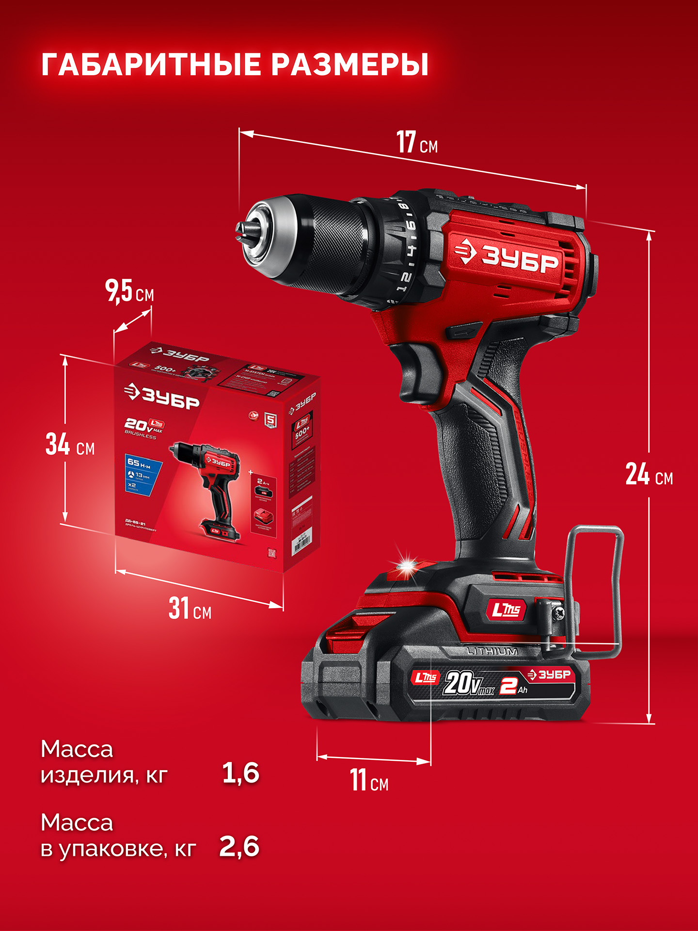 Бесщеточная дрель-шуруповерт ЗУБР 20 В, 65 Н·м, 1 АКБ LMS (2 А·ч), ДБ-65-21 - предназначена для сверления отверстий в различных материалах (при установке соответствующих сверл), закручивания/откручивания резьбовых соединений (при установке соответствующих бит), перемешивания ЛКМ (при установке соответствующих насадок).
