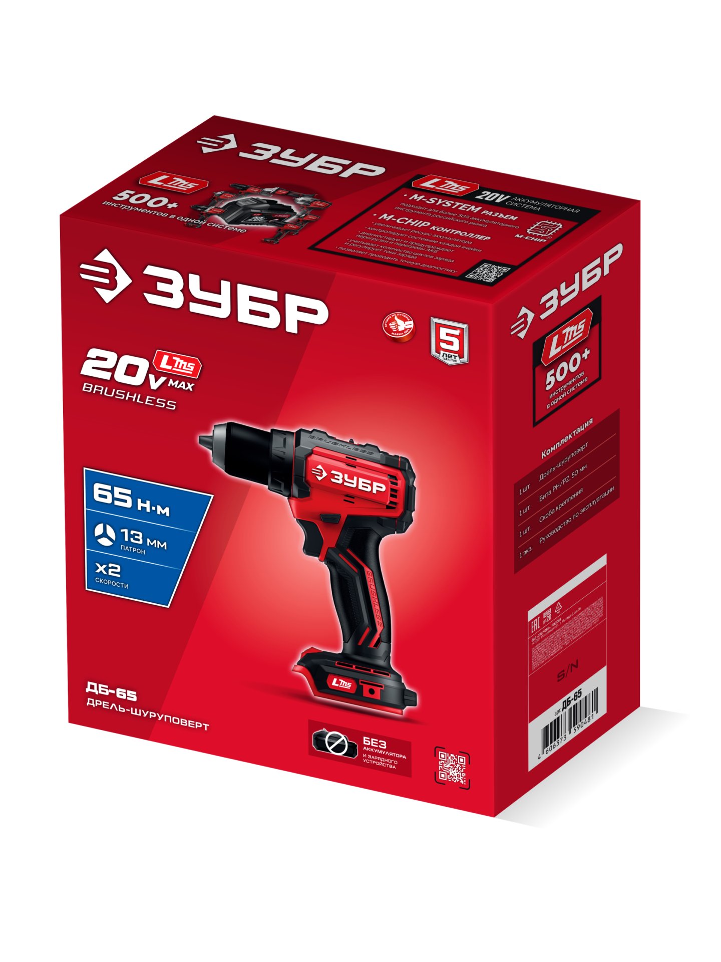 Бесщеточная дрель-шуруповерт ЗУБР 20 В, 65 Н·м, без АКБ (LMS), ДБ-65 - предназначена для сверления отверстий в различных материалах (при установке соответствующих сверл), закручивания/откручивания резьбовых соединений (при установке соответствующих бит), перемешивания ЛКМ (при установке соответствующих насадок).