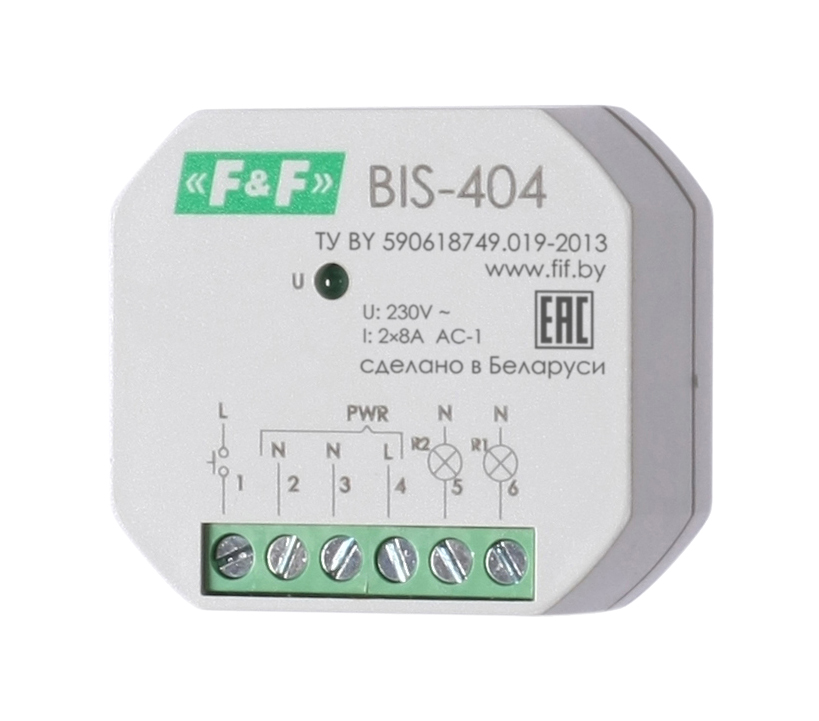 нет памяти контактов; возможно подключение выключателей кнопочного типа с подсветкой; максимальный ток нагрузки 2х8 А.
