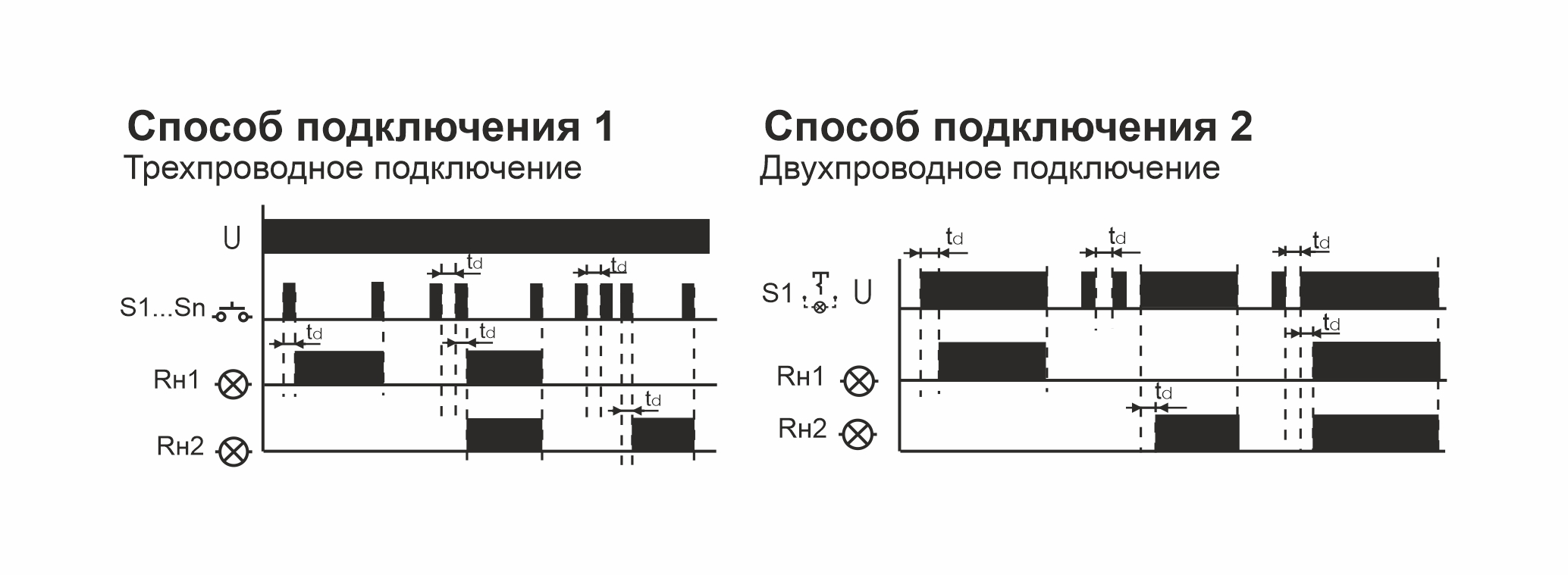 Принцип работы: включение, либо выключение нагрузки осуществляется подачей электрического импульса на вход управления реле замыканием любого из выключателей кнопочного типа, параллельно соединенных между собой. В зависимости от способа подключения возможно управление реле выключателями кнопочного типа, либо с фиксацией переключающим) выключателем.