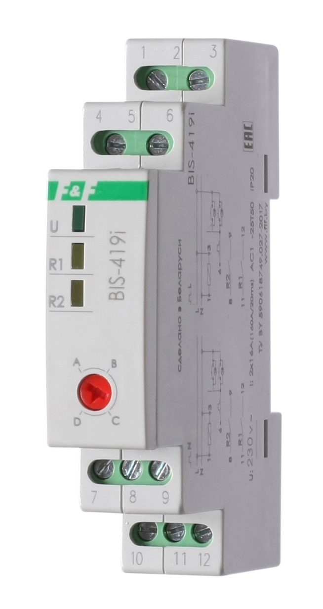 Монтаж на DIN-рейку. Предназначено для управления двумя нагрузками по одному управляющему входу, включение/выключение освещения, электроустановок и т.п. из нескольких мест.