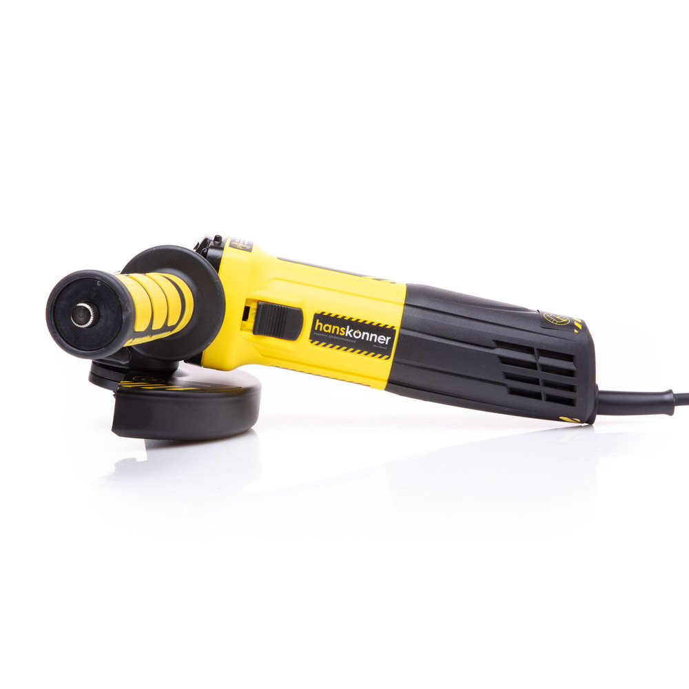 Болгарка (УШМ) Hanskonner HAG9012TES - компактная универсальная болгарка (УШМ) под рабочий диаметр диска 125 мм, предназначена для резки арматуры, профилей и прочих изделий из металла, зачистки плоских металлических поверхностей после сварки и механической обработки, шлифовочных работ.