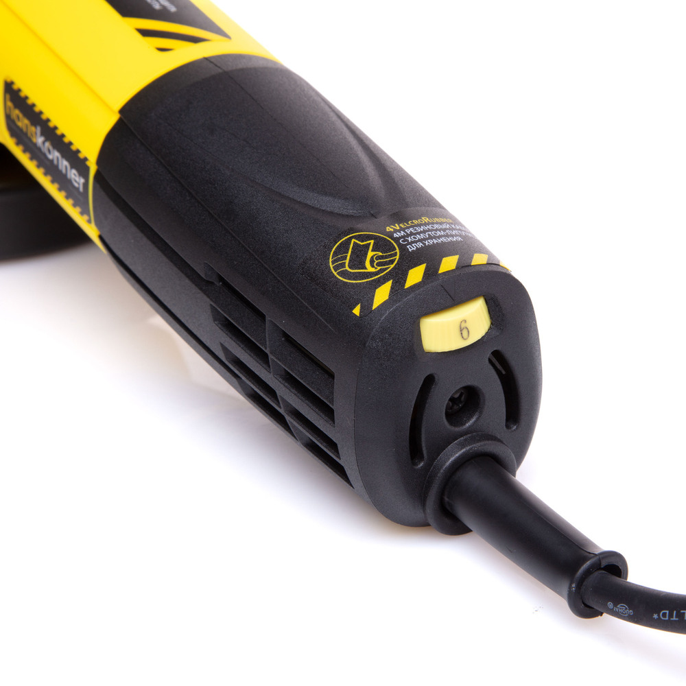 - Сетевой кабель имеет резиновую изоляцию, что позволяет сохранить его гибкость и эластичность в условиях низких температур, а четырехметровая длина кабеля обеспечивает рабочую зону площадью до 50 квадратных метров, исключая необходимость задействовать дополнительный сетевой удлинитель.
