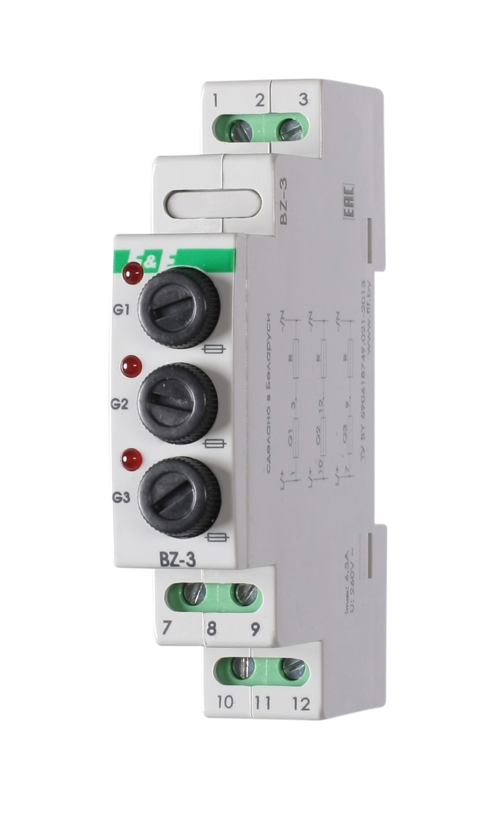 Особенности: 3 ячейки для предохранителей; напряжение питания - 230 В AC/DC; ток предохранителя <6,3 А.